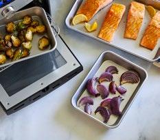 Füge die Lebensmittel in verschiedenen Stadien des Garens hinzu und würze sie separat! Enthält zwei 16 x 22,5 cm große Bleche, die in den Deluxe Air Fryer passen, und ein 22,5 x 32 cm großes Blech. Sie sind aus dickem Stahl gefertigt, verziehen sich nicht und garen das Essen gleichmäßig. Die hochwertige Beschichtung verhindert das Anhaften von Lebensmitteln und sorgt dafür, dass dein Gericht gut aussieht. Sie lassen sich zur einfachen Aufbewahrung ineinanderstapeln. Backofenfest bis zu 290 °C. Gefrierschrankfest. #100597 l