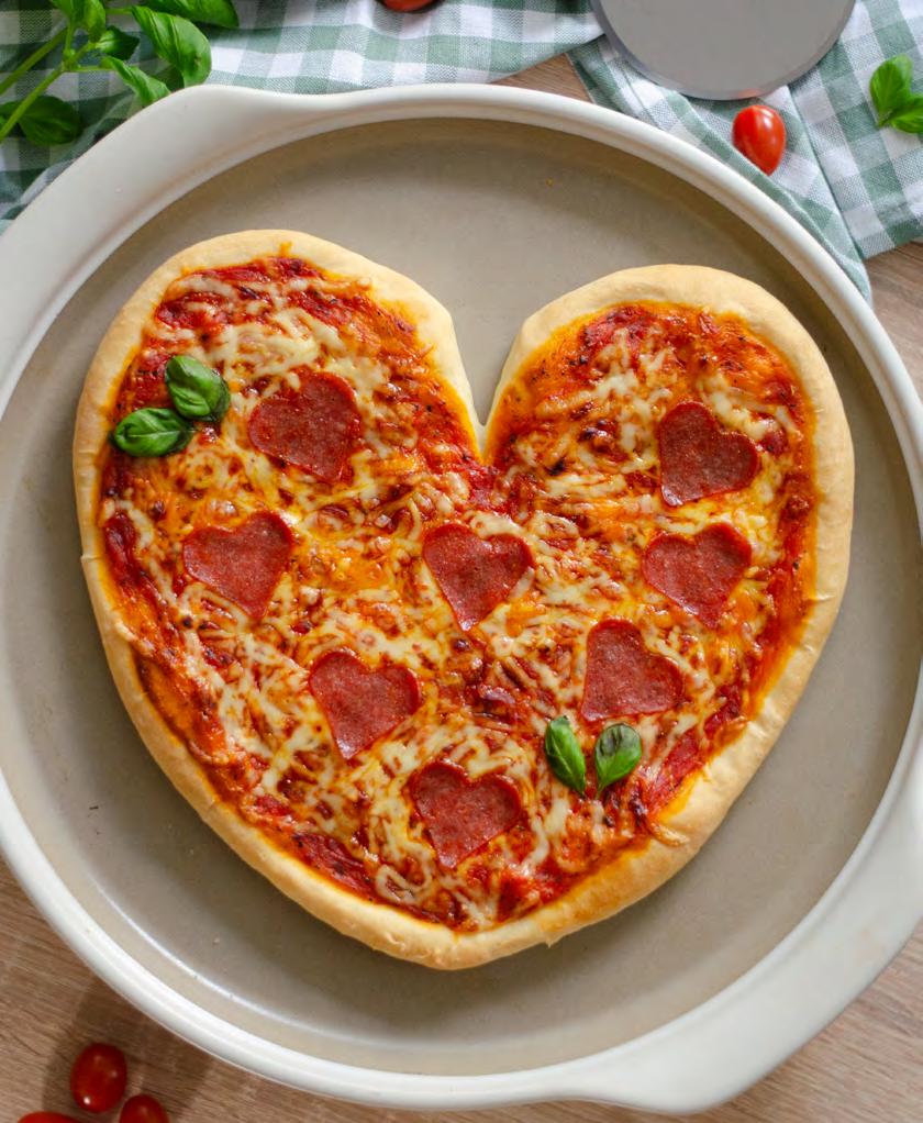 Diese Pizza lässt Herzen höherschlagen! Jeder liebt Pizza, deshalb ist sie auch perfekt für das Valentinsessen geeignet.