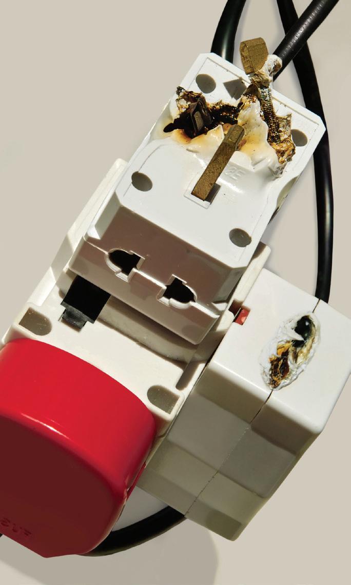 • multiple cords plugged into one outlet where a circuit overload could occur