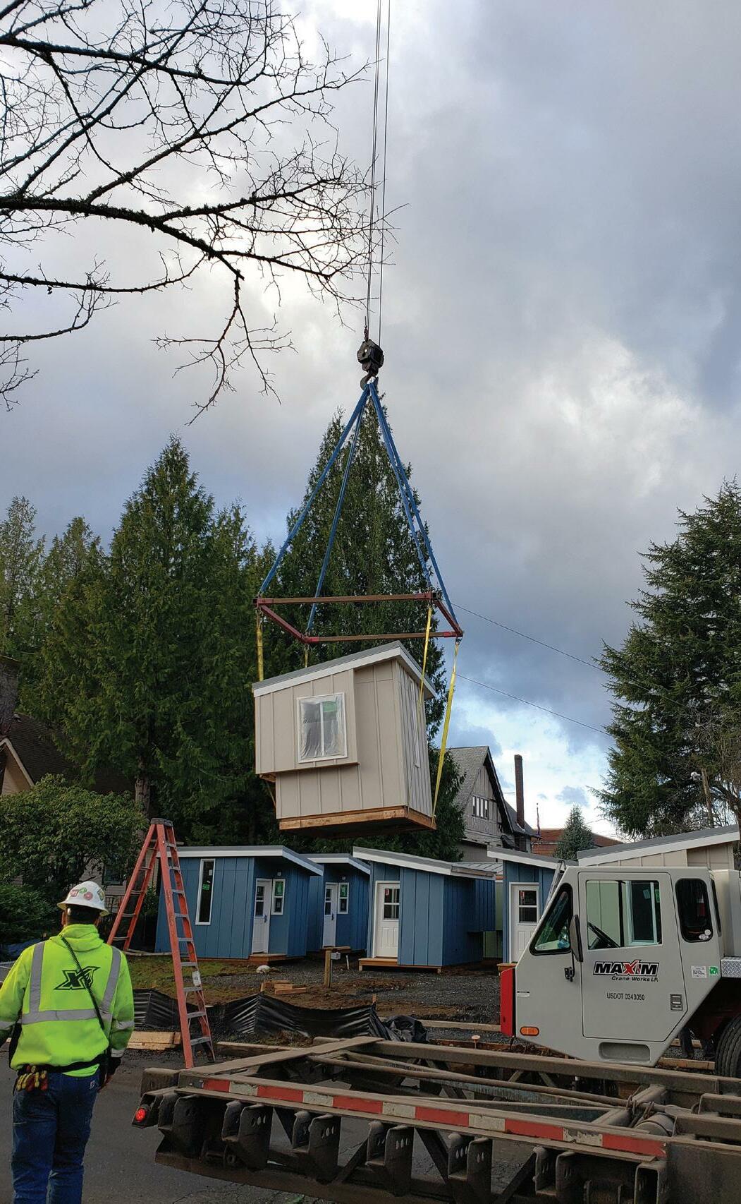 HBF also commissioned an innovative three-room modular shelter called the “MOD”, built by HBA Past President and HBF supporter Nathan Young of MODS PDX. The shared walls and roofing on the MOD result in lower costs for temporary housing. HBF featured the structure at the 2021 NW Natural Street of Dreams, and the Fall Home and Garden Show, winning praise from the public. The