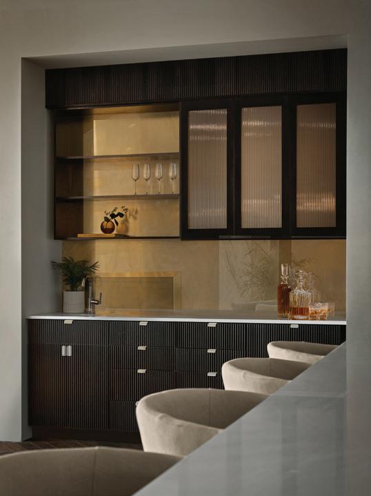 off the garage provides ample storage for the client’s extensive holiday decor, ensuring these items are easily accessible and well-organized. Built-up moldings add depth and character to walls and ceilings, drawing the eye upward and creating a sense of grandeur. Mantles, often the focal point of a room, are given special attention, becoming functional yet decorative elements that anchor the design. The choice of materials and finishes is crucial in achieving the traditional yet updated look. High-quality woods and meticulous craftsmanship are evident in every piece of cabinetry, from kitchen units to bathroom vanities and living room bookshelves. These details convey a sense of permanence and quality that is a hallmark of traditional design.