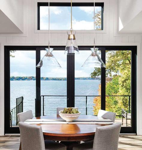 To maximize natural light and fully embrace the breathtaking lake view, large unobstructed windows have been installed, along with a 20-foot sliding door that replaces an entire wall, effortlessly blending indoor and outdoor spaces. Traditional lighting fixtures have been replaced with sleek, modern solutions, including