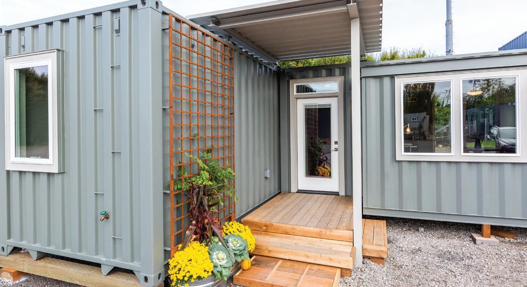 e like to call the Ramona a “hybrid.” It features a 40’ shipping container in the back and a wood-framed portion in the front. Aside from the roof, this home is fully built in our shop and will be delivered to your site as one module. The sloped roof and wood lap siding allow this home to blend in with traditional homes while maintaining the novelty of being a shipping container home. A favorite trait of this house is the deck that hangs from the container’s open doors. The size of this home makes it perfect for an accessory dwelling unit (ADU).