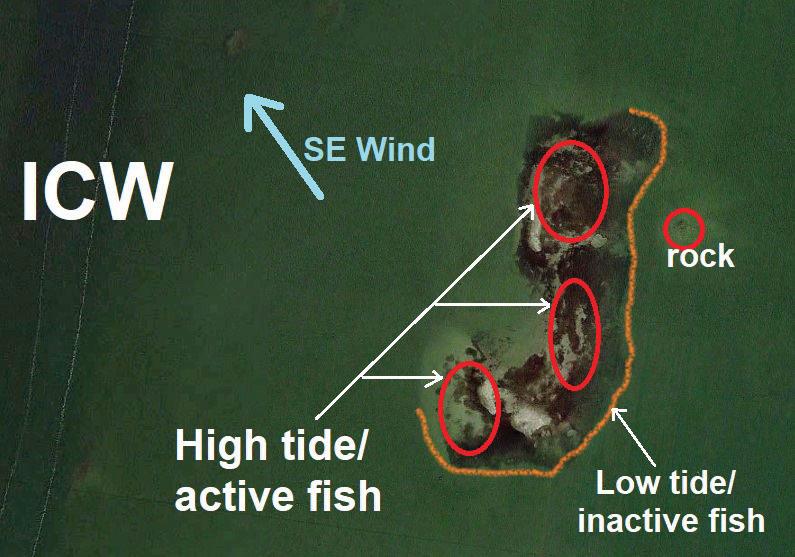 This same kind of scenario plays out on spoils in deep South Texas, ones comprised of a mix of sand, rocks and grass. On these kinds of spoils, especially in summer, trout and reds often pressure mullet into rafts over the shallowest crowns of the structures late at night, feasting on them actively soon after the sun rises. Later in the day, with the sun straight overhead, those same fish will move toward the edges of the spoils, where they loaf and feed less actively. Spoils in areas with minimal tidal movements, such as in the Upper Laguna Madre, still have micro-spots on them, usually related to the details of their design features and the way grass beds grow to adorn them. Many of these micro-spots lie on the side of the spoil most often exposed to the effects of the prevailing winds during the warm period, meaning on their eastern and southern sides.