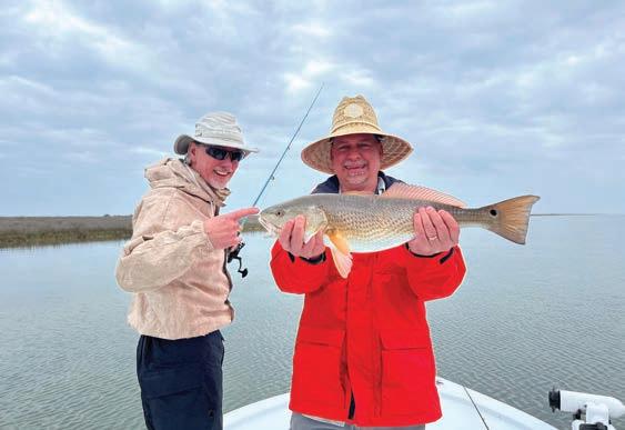 The beginning of winter brings excellent fishing for anglers who like artificial lures. “We’ve been having fun chasing redfish on the flats as the water cools,” Chris says. “Small topwaters like Super Spook Juniors and Baby Skitter Walks are my absolute favorites—redfish stay aggressive toward them as temperatures trend downward. “Trout action has been great and should only improve as winter sets in. We’ve been using soft plastics and slow-sinking lures such as Paul Brown Originals and Mansfield Knockers Darters. Watch water temperatures closely; as they drop, look for slightly warmer areas— often pockets protected from strong north and northwest winds, near main bay shorelines. Windward areas with rolling waves usually hold colder water after a front.”