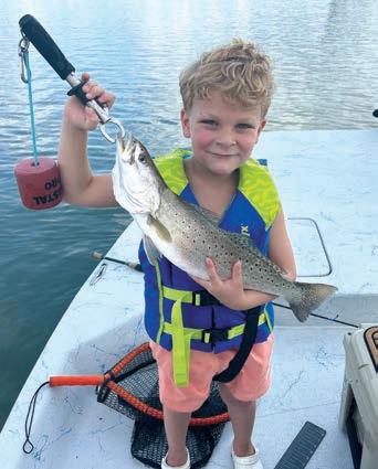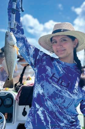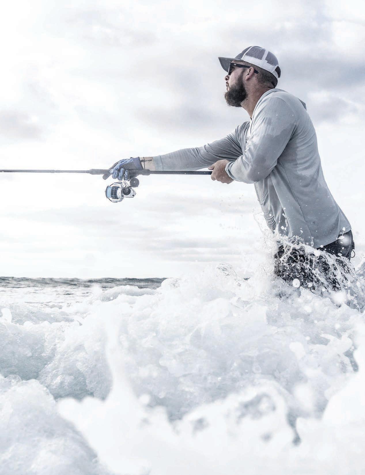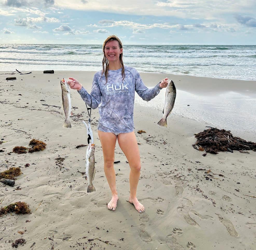 Blake takes a short break from hunting ducks during the midDecember split, and the fishing keeps him busy. “The first half of December is great for targeting trout on soft plastics early in the mornings, when water is coolest, and on topwaters later in the day as it warms. I like a Baby Skitter Walk in black and silver this time of year. “The key to topwater success is seeing bait at the surface—if mullet are jumping, trout will blow up. During the second half of the month, we hunt in the mornings and fish afterward, targeting reds in the marshes if we see them along the way. Otherwise, we work main-bay shorelines in thigh- to waist-deep water with dark Norton Sand Eels or Gulp! lures in pearl and chartreuse.”