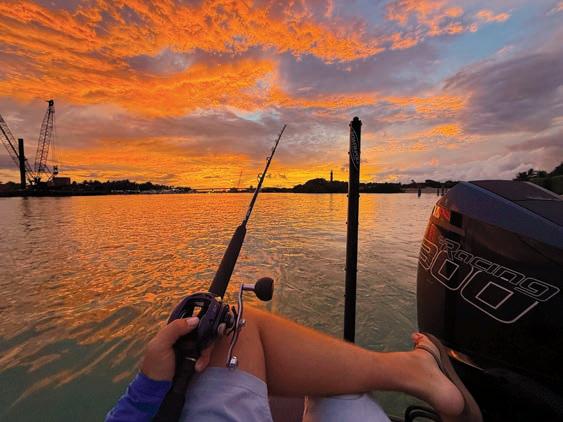 especially when the bite is tougher. “When tide cycles bring water in during the afternoon, coves and lakes can light up. If a strong incoming tide occurs near dusk, the action can be epic. We like to leave the dock late and fish until dark this time of year.”