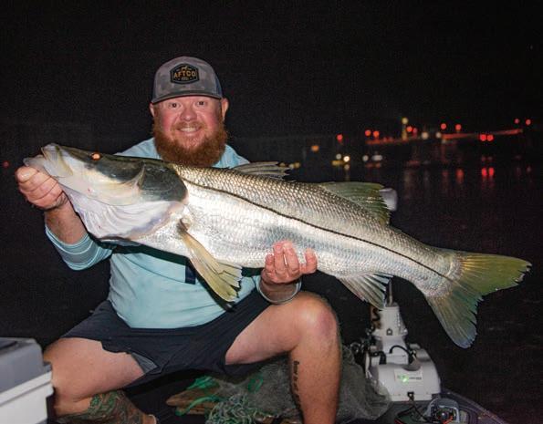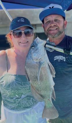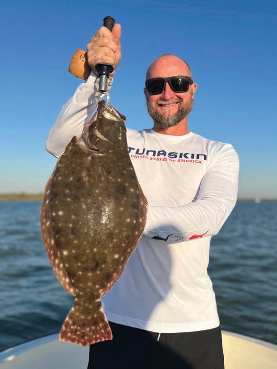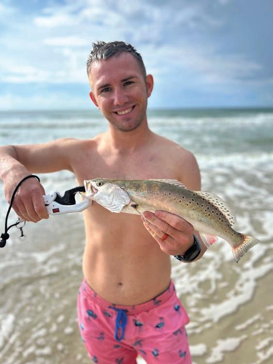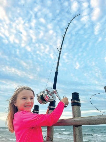 “If we have a warm December, we’ll have stellar fishing through year’s end,” Eric says. “Regardless, red and black drum will be plentiful in the surf. Oversized reds will continue roaming, feeding on mullet, whiting, and crab, while black drum feed mostly on crustaceans. “On calm, clear days, pompano action should be fast— shrimp or Fish-Bites are best for targeting this delicious species. Trout in the surf are hit-or-miss, but with this year’s odd weather, surprises are possible. Slow-sinking lures can tempt quality trout when the water’s clear. “Most shark species will move offshore this month, leaving sandbar sharks as the main players—often pushing 200 pounds. We’ll still see blacktips, bonnetheads, and Atlantic sharpnose. Mature sandbars enter our waters to breed during winter. Baits like whiting, sheepshead, and small rays are optimal for targeting them. Sandbars are federally protected and must be released; for harvest, the Atlantic sharpnose makes good table fare.”