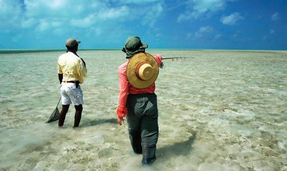 When wading for bonefish, light line is required. Start off with 8-pound mono.