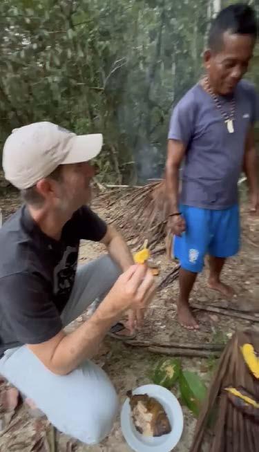 We met the floatplane on the tarmac after a short five-minute drive from the hotel. My Simms waterproof bag containing just 25 pounds of essentials and a small backpack was all I needed for my three weeks stay in the Amazon. As we positioned for takeoff, I couldn’t help but notice a spattering of old, damaged airplanes along the airstrip (see QR code). Off we went, and as we flew high over the Amazon the clear conditions were ripe for the quest for trophy peacock bass. We could see white sandbars all along the Rio Curicuriari, which meant the water level was low. Just under four hours later we made a smooth water landing where our houseboat, staff and guides, would greet us. The accommodations were exceptional, that being a small room with a comfortable single bed, air conditioning, and a small bathroom. We had a nice clean dining area and covered upstairs deck on top of the houseboat overlooking the dark red water with forever views of the rainforest.