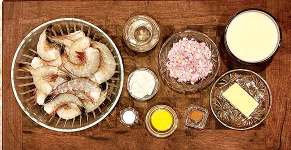 until smooth. Add salt, pepper, and wine. Cook about 10 minutes more. Remove from heat, add shrimp, and quickly stir in egg yolk. Return to heat and continue cooking slowly until heated through. Place in ramekins and sprinkle tops with paprika and heat under broiler until piping hot. Yields – 3-4 Servings