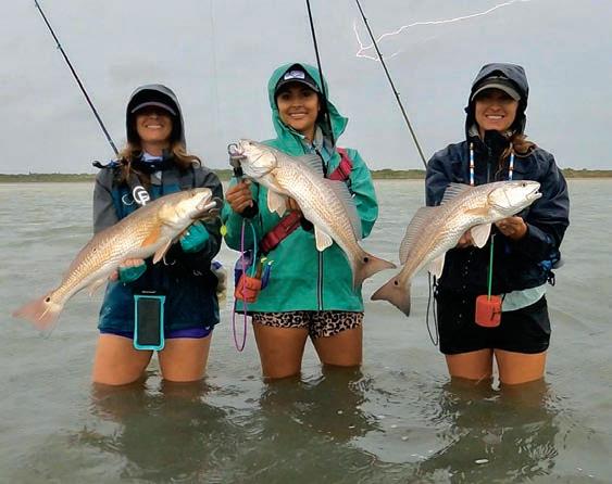 Mansfield just a little bit further inland, (yes, in I have owned two and I can say they will keep you dry. We recently held my boat, of course). It is really cool to a media event with some of the KWigglers Pro Team Women Anglers cruise slowly on plane in crystal-clear and the wind and rain showed up right on cue. They battled both like water in pastures where cow and nilgai the pros they are and still caught good numbers of fish in adverse tracks are holding small pinfish and conditions. I am super proud to be associated with them. Captain Wayne Davis has been fishing the Lower Laguna-Port Mansfield for mullet. I am not quite sure how many more acres of fishable water we might On that note – Captain Ernest Cisneros, myself, and KWigglers Brand Ambassador, Erica Rae Hirsch, will be holding a women’s only fish over 20 years. He specializes gain if it rises another foot or more, camp this fall at Port Mansfield. This is a three-day program and not in wade fishing with lures. but I would bet many. I am not the just a fishing trip. Yes, there will be fishing, but we will be covering biggest fan of extreme high water but so much more. Feel free to give me a call for more information on Telephone as I have previously stated, I use it to this exclusive educational opportunity. You can also find updates on 210-287-3877 my advantage best I can. One of the Facebook – Texas Women Anglers. Email advantages of high water is that it will Getting into July, we can expect elevated water temps and seasonally captwayne@kwigglers.com eventually drop, and when it does you lower tides. I will shift my mostly knee-deep game to thigh-deep along better not miss out. You see, all those ledges, points, and edges of grass lines. This pattern should hold through