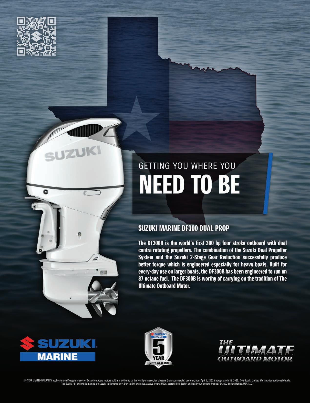 Texas Saltwater Fishing Magazine (ISSN 1935-9586) is published monthly by Texas Saltwater Fishing Magazine, Inc., 58 Fisherman’s Lane, Seadrift, Texas 77983 l P. O. Box 429, Seadrift, TX 77983 © Copyright 1990 All rights reserved. Positively nothing in this publication may be reprinted or reproduced. *Views expressed by Texas Saltwater Fishing Magazine contributors do not necessarily express the views of Texas Saltwater Fishing Magazine. Periodical class permit (USPS# 024353) paid at Victoria, TX 77901 and additional offices.