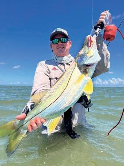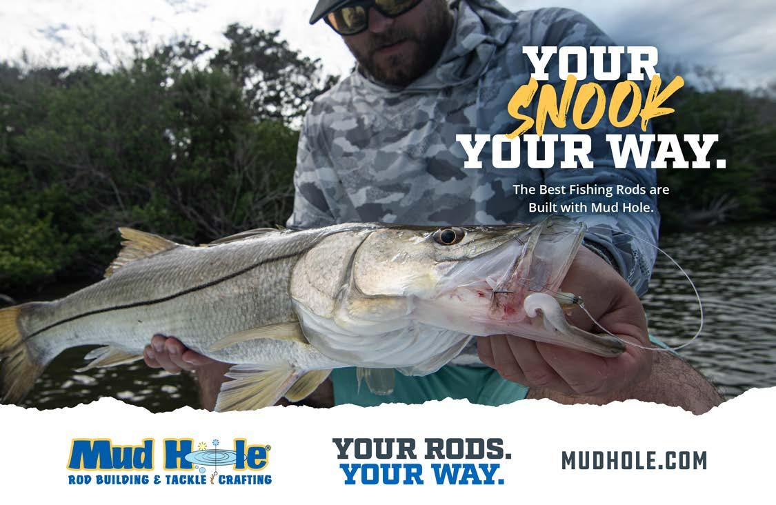 Capt. Wayne Davis is this month’s cover angler, showing off a beautiful 10-pound Lower Laguna snook. Wayne was wading a shoreline cove at sunrise and noticed bait fish behaving nervously. The fish slammed his Mansfield Knocker in Zombie Mullet color and the fight was on! Tagged for Harte Institute and released for another angler to enjoy!