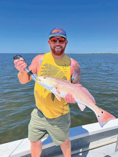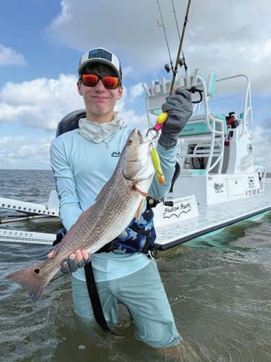 Jackson Oaks was very happy to land his firstever redfish while wading.