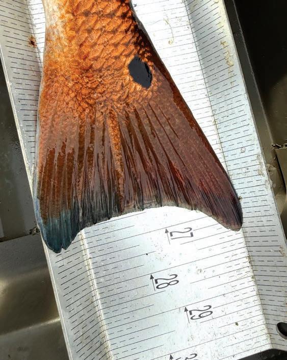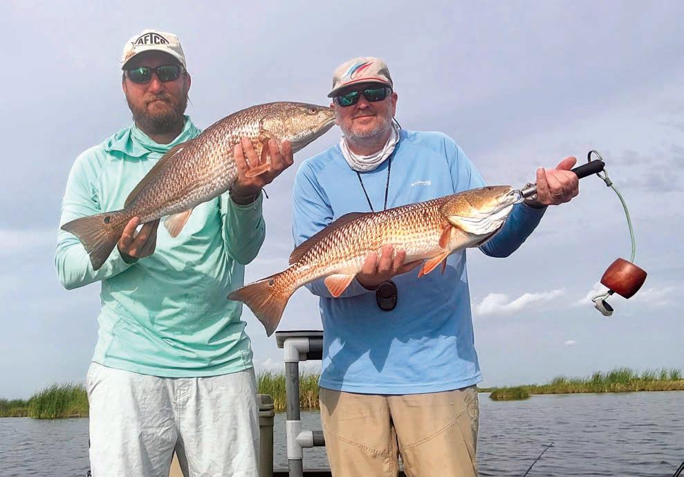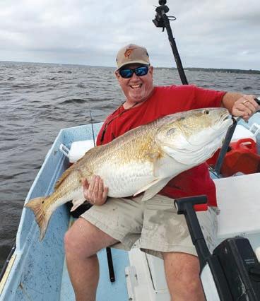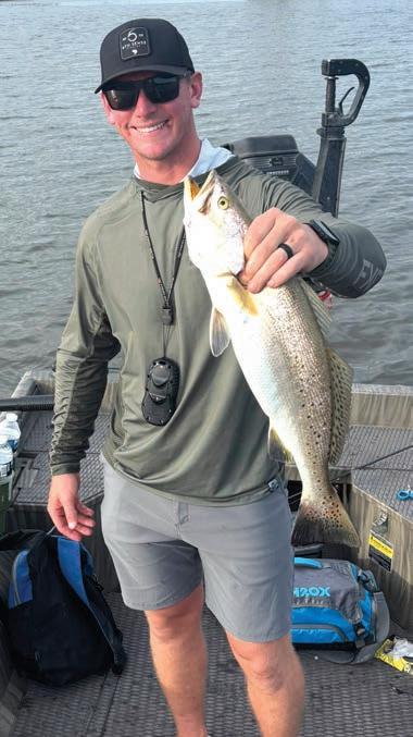 Trevor Callarman was able to catch one of several reds after a great morning of trout fishing was cut short by high winds. Protected shorelines with structure offer a solid fallback plan when it’s windy.