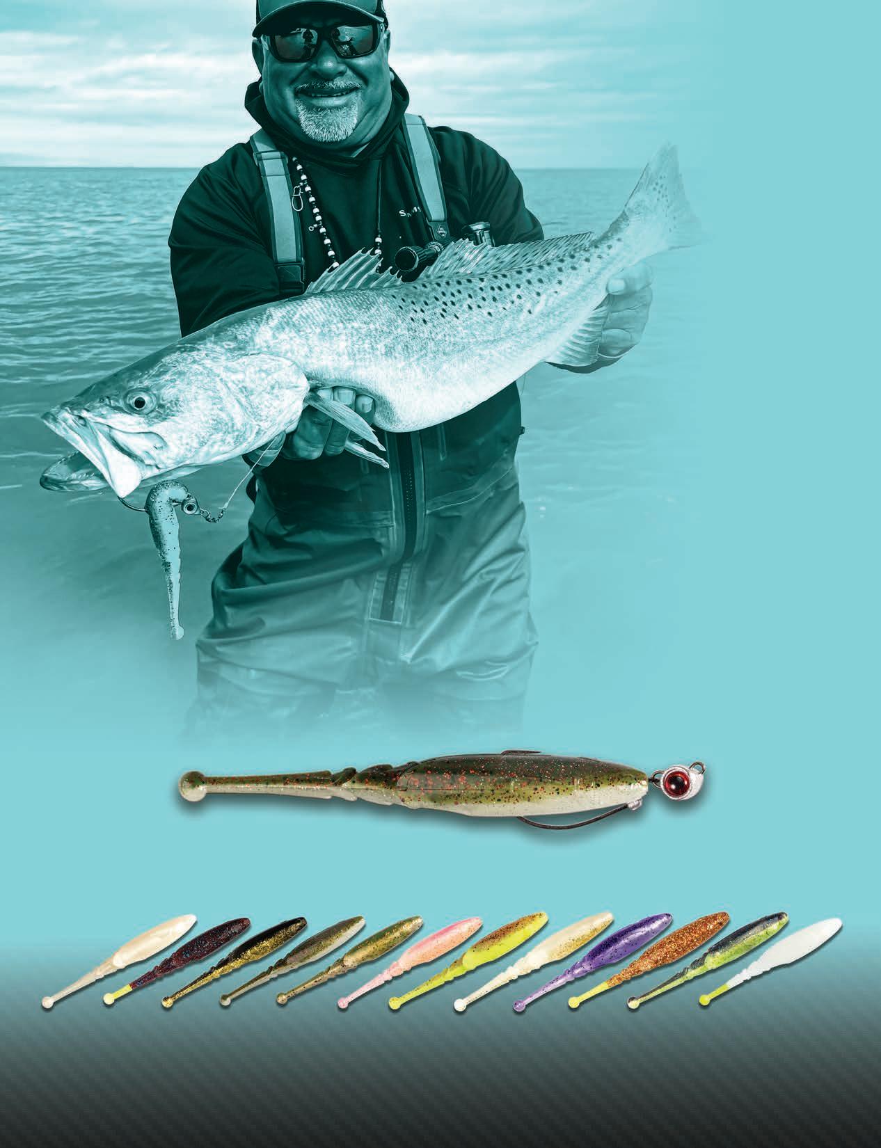 of trying to catch a fish on top, especially a full-sized plug. I’d tie on a worm and keep it on, unless I suddenly found the catching easy on it, got my three fish, and could see lots of mullet and other bait fish jumping out of the water. This basic plan of attack has worked for me on many occasions in the years since I stopped fishing against others in tournaments and began measuring my catch mostly against those fishing with and beside me on charters. When a fast morning topwater bite wanes, the best way to keep catching often involves switching down to a soft plastic.