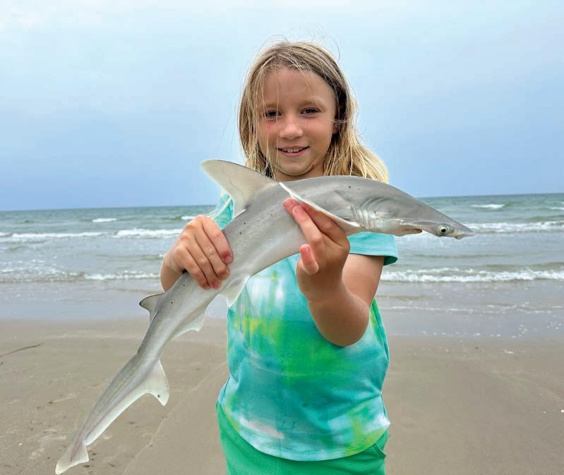 The fishing in Matagorda has stayed pretty steady through the summer. Drifting East Matagorda Bay has been productive lately. We’re catching best on paddletails fished down deep, close to the shell on the bottom. Hogie’s Swimmin’ Jacks in pumpkinseed/chartreuse have been producing well for me. I’ve been catching quite a few trout on Bass Assassin Sea Shads, too. I’m mainly fishing them in four to five feet of water over scattered shell, rigging the plastics on quarter-ounce heads. We do have some birds working at times. I’ve found some big schools of mixed reds and trout under small flocks of laughing gulls in the middle of the bay. Deeper reefs and structures in West Matagorda Bay continue to produce some nice trout on live shrimp dangled a couple feet under Coastal Corks. The surf and jetties have also been pretty solid on the days the weather has let us get out and fish them. We’ve had some really good days catching trout in the surf on Skitter Walks and Spook Juniors lately, too. Reports are rolling in of impressive catches of tarpon off the beachfront, most of them biting big soft plastic shads and curl-tails rigged on Coon-pop heads.