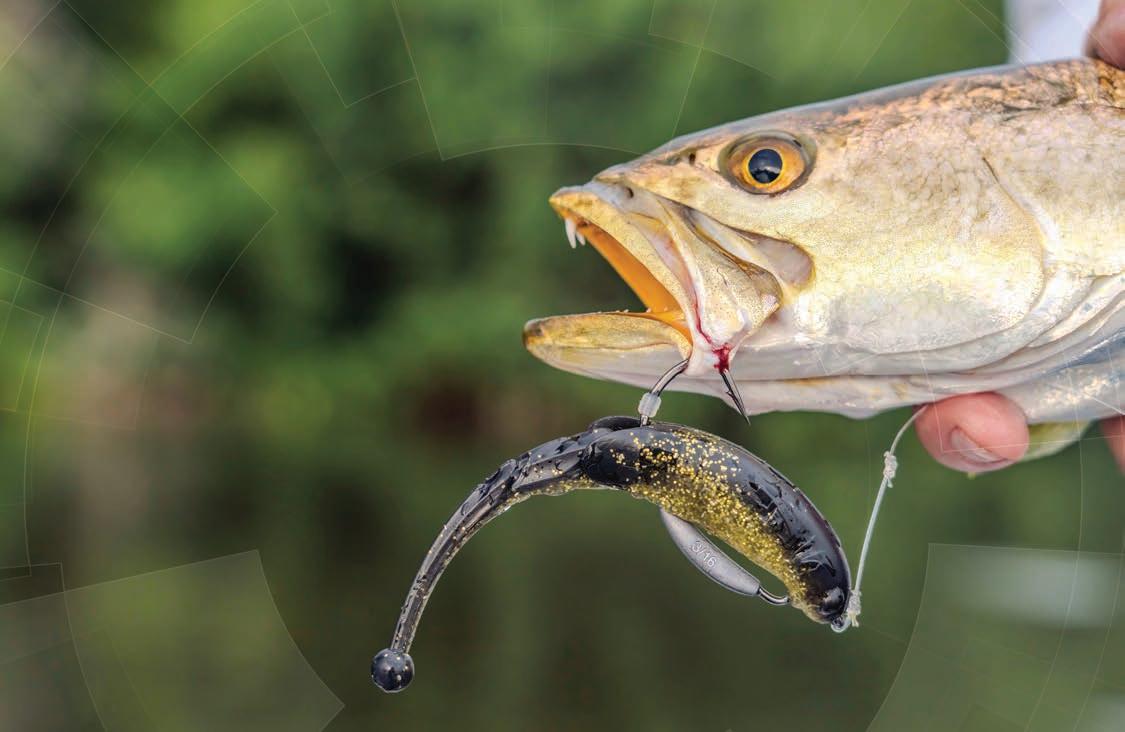 Flounder fishing improved significantly during the past several weeks and I expect this will continue into September. Quite often, catching one flounder is a good sign that others may also be staged nearby. Flounder seem to be rather like the snook in this regard. If you are serious about targeting flatfish, I heartily recommend using heavier jigheads in order to keep the bait near bottom where the flounder are most likely to be holding. ZMan’s Eye Strike jigheads in quarter and three-eighths ounce size are good choices. Remember that flounder have no swim bladder – when they’re not swimming they’re lying on bottom.