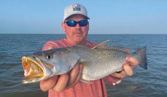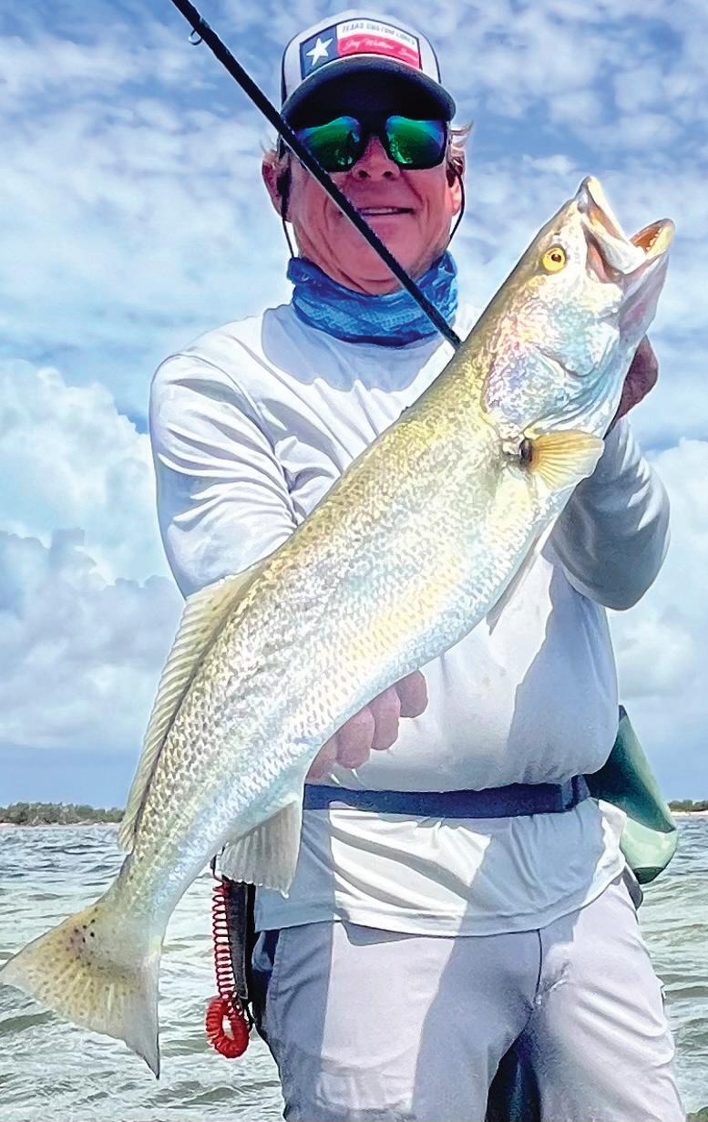 In September, Lynn expects to see a slight shift in the patterns which best produce trout and reds in the Port O’Connor area. “We’ve been catching plenty of trout lately early in the mornings on topwaters, and later in the day mainly on soft plastics. We’re targeting them on shallow flats loaded with bait lying close to dropoffs into deeper water, including on some of the spoils on the main ship channel, some of the flats near the pass, and in the surf, when winds allow us to get out there. September is a hot month in many years, and if it’s hot this year some of those places will continue to produce plenty of fish. But, especially later in the month, we often see a surge in the tide levels and some cooler weather. If we get cooler weather and a push of water into the bays from the Gulf, fishing along the main-bay shorelines, in the coves and in the back-lakes can improve
