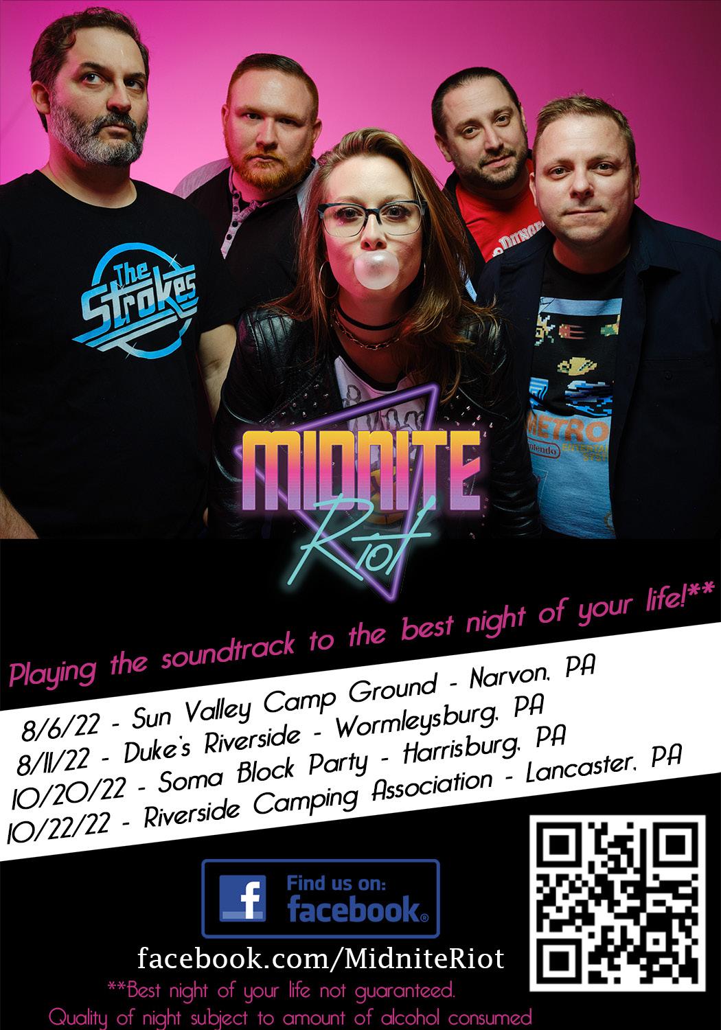 My next stop was my first trip to 2nd street in a very long time to check out the new nightclub, Nocturnal, where Midnite Riot was on the stage. Nocturnal is the same building as the Harrisburg Hardware Bar, The Vault, or many other places have existed through the years. It’s basically the same, they just spray painted everything black, and took out the stairs so it opens up the room, and the creepy sound guy (Ritt) isn’t lingering under the stairs. HA! Midnite Riot had the party hopping in full force. Their song selection is on point, they are playing so many favorite sing-along, dance-a-long hits to keep the crowd partying all night long! Check out Midnite Riot’s ad in this issue to see where they will be rockin next!