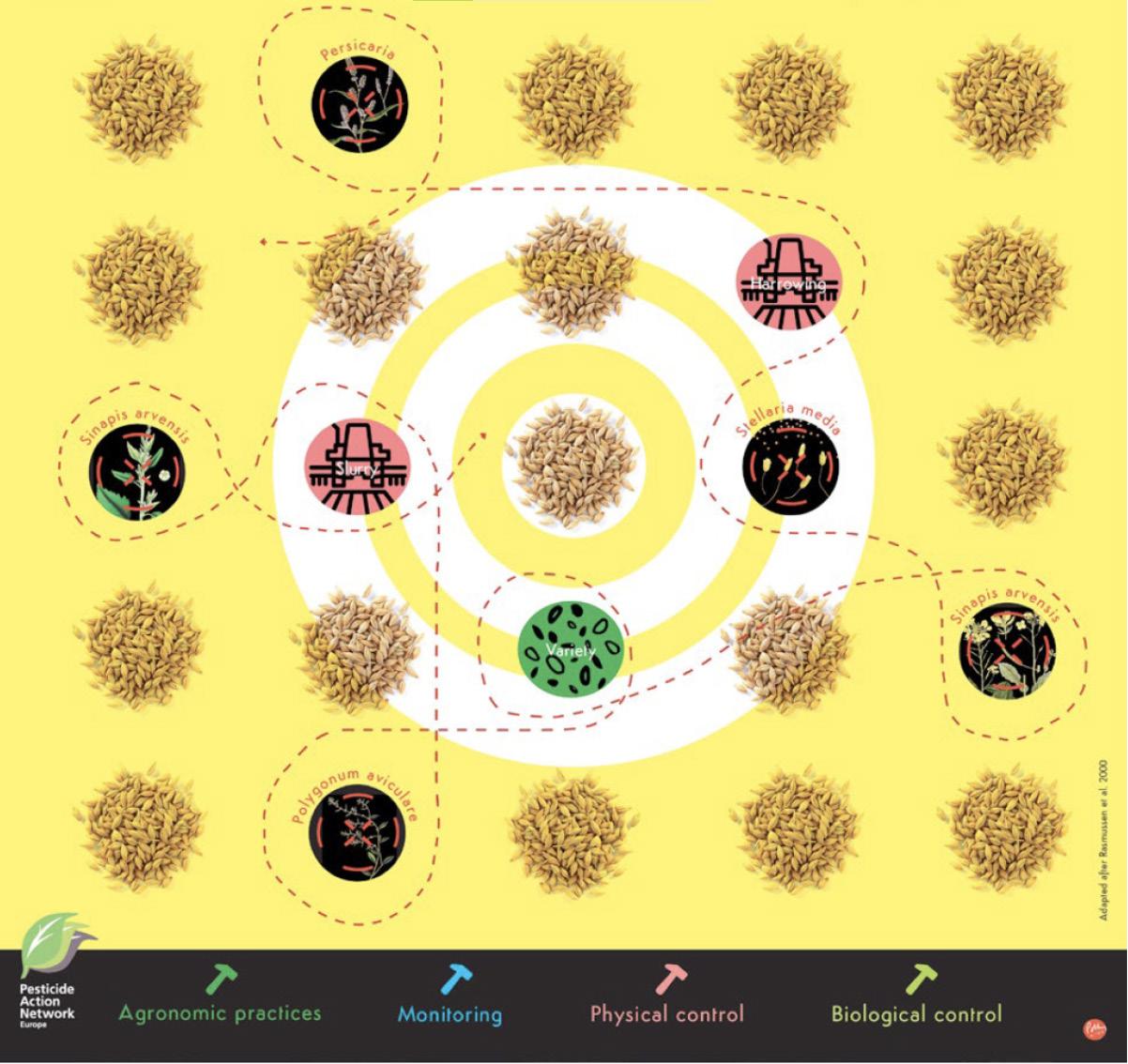 There is a widespread belief that herbicides are safe for human health and have little impact on the environment. Based on this belief, mainstream agricultural systems are now almost completely dependent on the use of pesticides, particularly herbicides. Many farmers have abandoned several equally effective, non-chemical weed management methods. As a result, every day tonnes of herbicides, particularly glyphosate products, are applied to fields and their surroundings, which can put human health at risk and negatively impacts biological processes and ecosystem functioning that can combat damaging weeds and other pests. Farmers and growers have become dependent on pesticides and herbicides while many non-chemical alternatives have been lost from the collective memory, so producers end up on a pesticide treadmill they cannot get off.