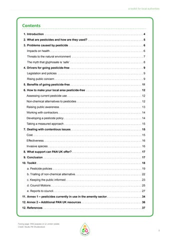 Pesticide Action Network UK (PAN UK) has compiled this brief guide to help local authorities end or reduce the use of pesticides in areas under their control such as streets, highways, pavements, parks, playgrounds, cemeteries and any other spaces that are frequented by the public While it is aimed at councils, it can also be used by other land managers interested in ending pesticide use