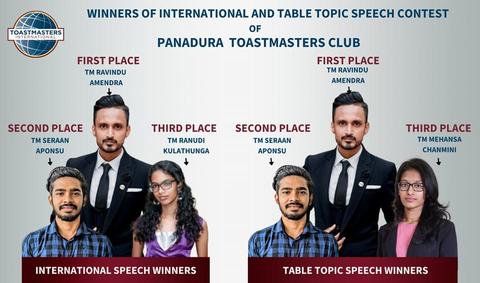 Theannualinternationalandtabletopicsspeechcontestof PanaduraToastmastersClubwasheldonthe11thofMarch, 2023. TM Sajini Bandaranaike was the chief judge of both contestsandtheywerechairedbyTMChandulaJithmi.The contest master for the international speech contest was TM Venuja.. and the table topics contest was TM Kavisha Batawala. The event began with the international speech contest and four talented and acclaimed toastmasters contestedthisyear.Thecontestantsspokeonvarioustopics leavingtheaudiencewithwordsofinspiration,guidanceand motivation. TM Ravindu Amendra emerged victorious winning first place. TM Seraan Aponsu was awarded 2nd placewithTMRanudiKulathungawinningthirdplaceinthis segment of the competition. Next up in the event was the tabletopicscontest Therewasanenthusiasticparticipation of six brilliant toastmasters from the club. All participants had to speak on the topic “It is better to commit smaller wrongs for better rights”. A simple topic yet onerous task, ll i d b ll d i h i
