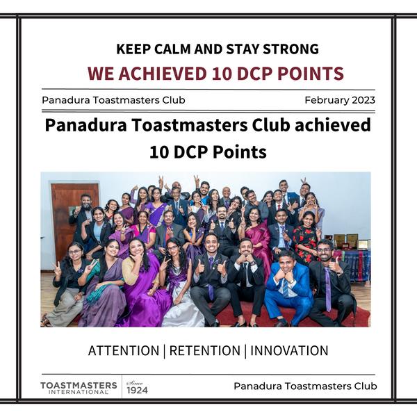 Panadura Toastmasters members always claim to be the oneswhowouldgoaboveandbeyondtoempoweranduplift others and I believe it is the secret behind the enduring success of the club The club has many strengths; among which, the most prominent is the compassionate leaders in thepastandpresentwhoardentlybelievedintheservicefor greater good than relentlessly chasing on personal goals only