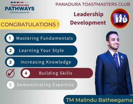 It is a privilege to be the Area Director for the Panadura Toastmasters club, where I was inspired to step into the world of public speaking. The club not only helped me improve my communication and leadership skills, but it changedeveryaspectofinterpersonalinteractions.Whether you are a novice, experienced, or award-winning speaker, PanaduraToastmastershasasimilarbutslightlyhigherlevel ofresourcestomakefriendswithwhowillhelpyouconquer thechallengesthatlieaheadonthepath.