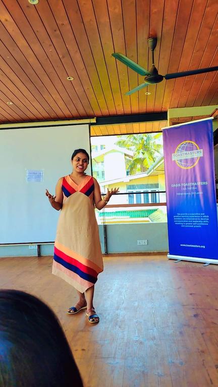 The new member TM Dumindi Perera fabulously played the timer’srole IdidtheAhcounter’srole,andtheToastmaster ofthedayintroducedmeasthe“Ahtaster”whileaddinghis creativity TM Kavisha Batawala played the grammarian’s role wonderfully The word of the day was “scrumptious”