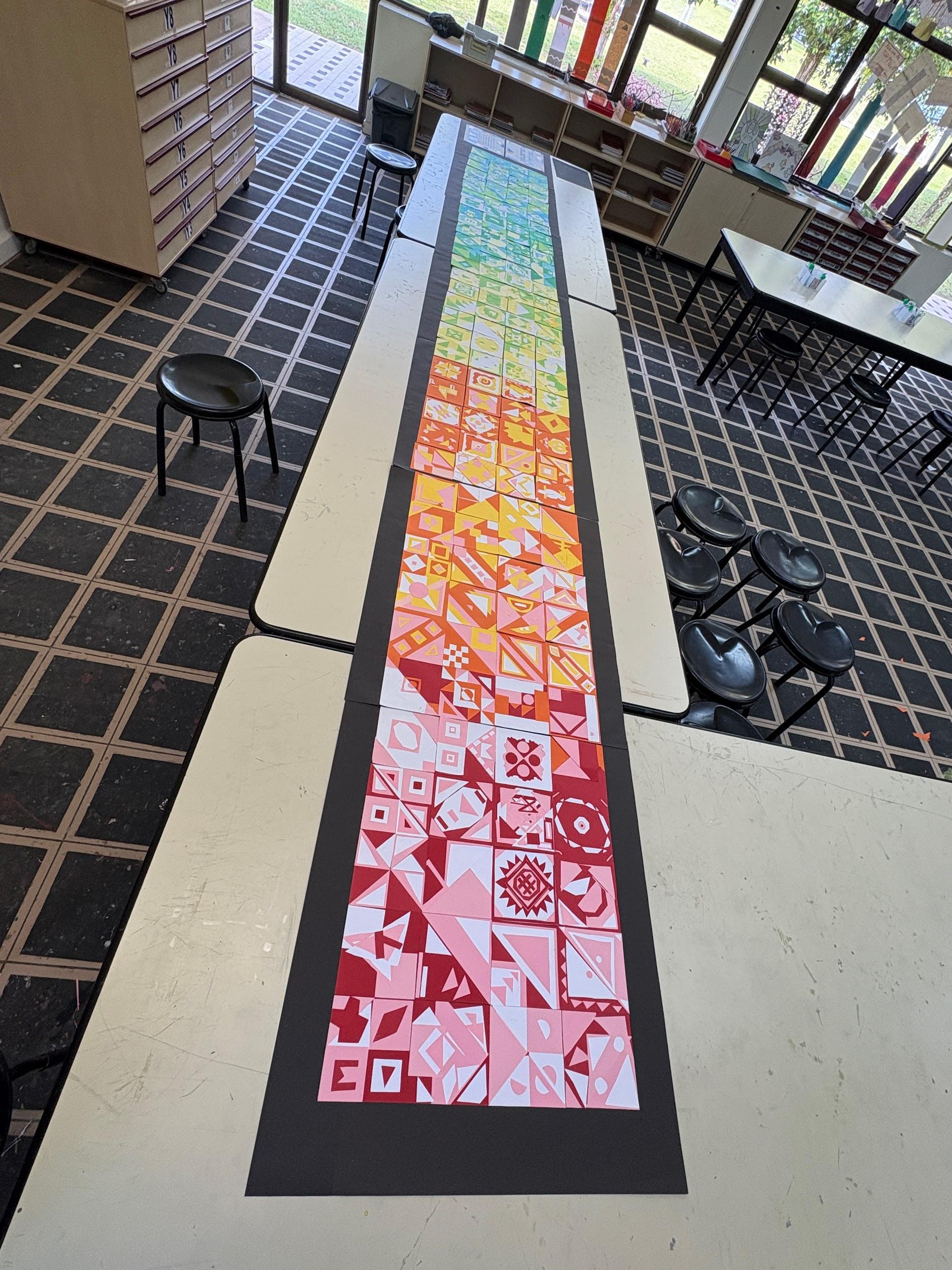 Each Panaga student received a set of shapes to create their own unique patch. Then, as a team, we combined everyone's work into a huge, vibrant mural. It is a perfect example of how our individual creativity and teamwork can create something truly special. The mural will be displayed in the Teraja entrance hall for Y4-Y8 and in the Rampayoh entrance for Y3. Can you spot your own patch?!