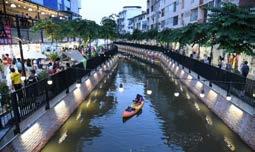 https://goo.gl/maps/gRNJ6KtgHe7S1Sxg7 https://www.youtube.com/watch?v=mdD2y18xGcY คลองโอ่งอ่าง(คลองรบกรุง) คลองโอ่งอ่าง โฉมใหม่ ที่มีแต่ความสะอาด และน่าเดินเที่ยว ป็นช่วงหนึ่งของคลองรอบกรุง มีขอบเขต จากปากคลองมหานาคไปถึงปากคลองซึ่งหันออกสู่แม่น้ำาเจ้าพระยาทางตอนใต้[1] ข้าง ๆ กับสะพาน พระพุทธยอดฟ้า มีระยะทางรวมประมาณ 750 เมตร คลองโอ่งอ่างทำาหน้าที่เป็นเส้นแบ่งเขตปกครอง ระหว่างเขตพระนครกับเขตสัมพันธวงศ์ กรุงเทพมหานคร ในอดีตคลองโอ่งอ่าง เป็นช่วงคลองสัญจรที่สำาคัญของฝั่งพระนคร ประกอบด้วยชุมชนตลอดช่วง สองฝั่งริมคลอง และถือเป็นแหล่งขายเครื่องปั้นดินเผาของชาวจีนและมอญที่สำาคัญเมือง จึงเป็นข้อ สันนิษฐานของชื่อคลองโอ่งอ่าง[2] ในสมัยรัชกาลที่ 5 มีการสร้างสะพานหันที่ถอดรูปแบบสะพานริอัล โต เมืองเวนิซ ประเทศอิตาลี[3] ซึ่งถือเป็นเอกลักษณ์ที่สำาคัญในยุคนั้น จนเมื่อเมืองได้ขยายตัวมากขึ้น +
