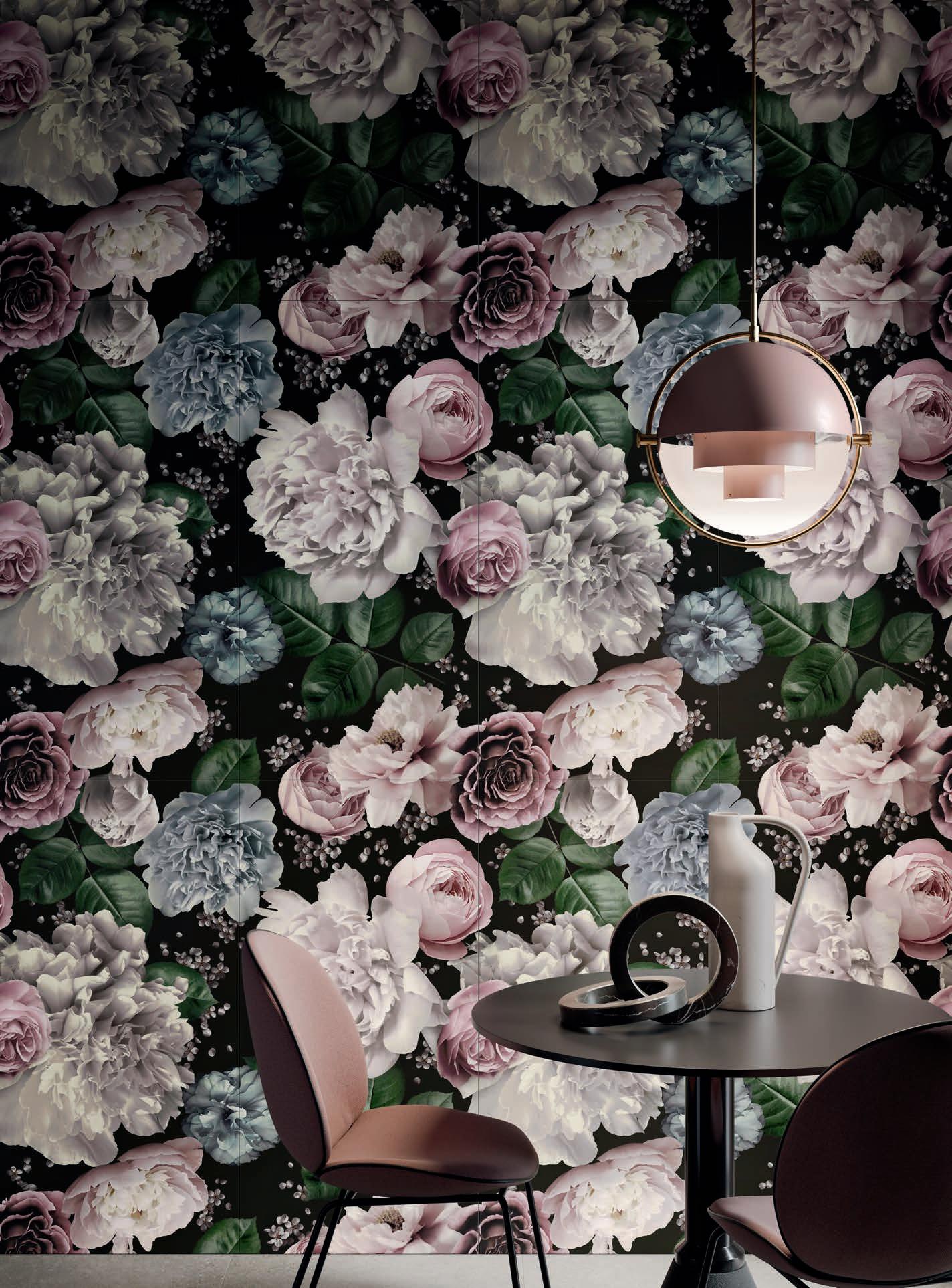 Fiori profumati in versione maxi, trame lussureggianti di peonie e fogliame che avvolgono e riempiono delicatamente lo spazio, trasformeranno ogni vostro interno in un piccolo angolo di paradiso naturale.