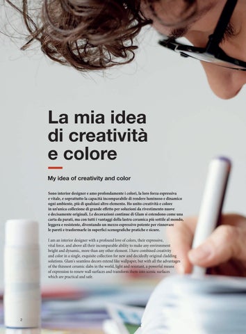 I am an interior designer with a profound love of colors, their expressive, vital force, and above all their incomparable ability to make any environment bright and dynamic, more than any other element. I have combined creativity and color in a single, exquisite collection for new and decidedly original cladding solutions. Glam's seamless decors extend like wallpaper, but with all the advantages of the thinnest ceramic slabs in the world, light and resistant, a powerful means of expression to renew wall surfaces and transform them into scenic surfaces which are practical and safe.