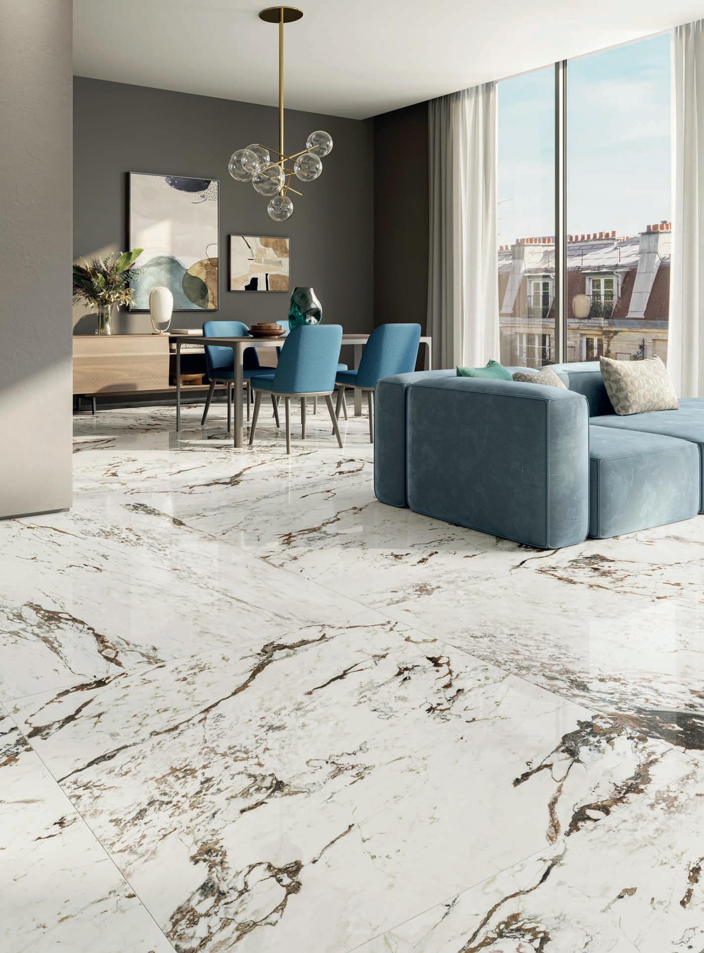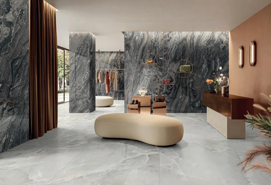 The seven marble-inspired textures broaden its aesthetic horizon, while the three technologies and five finishes enhance its versatility of use.