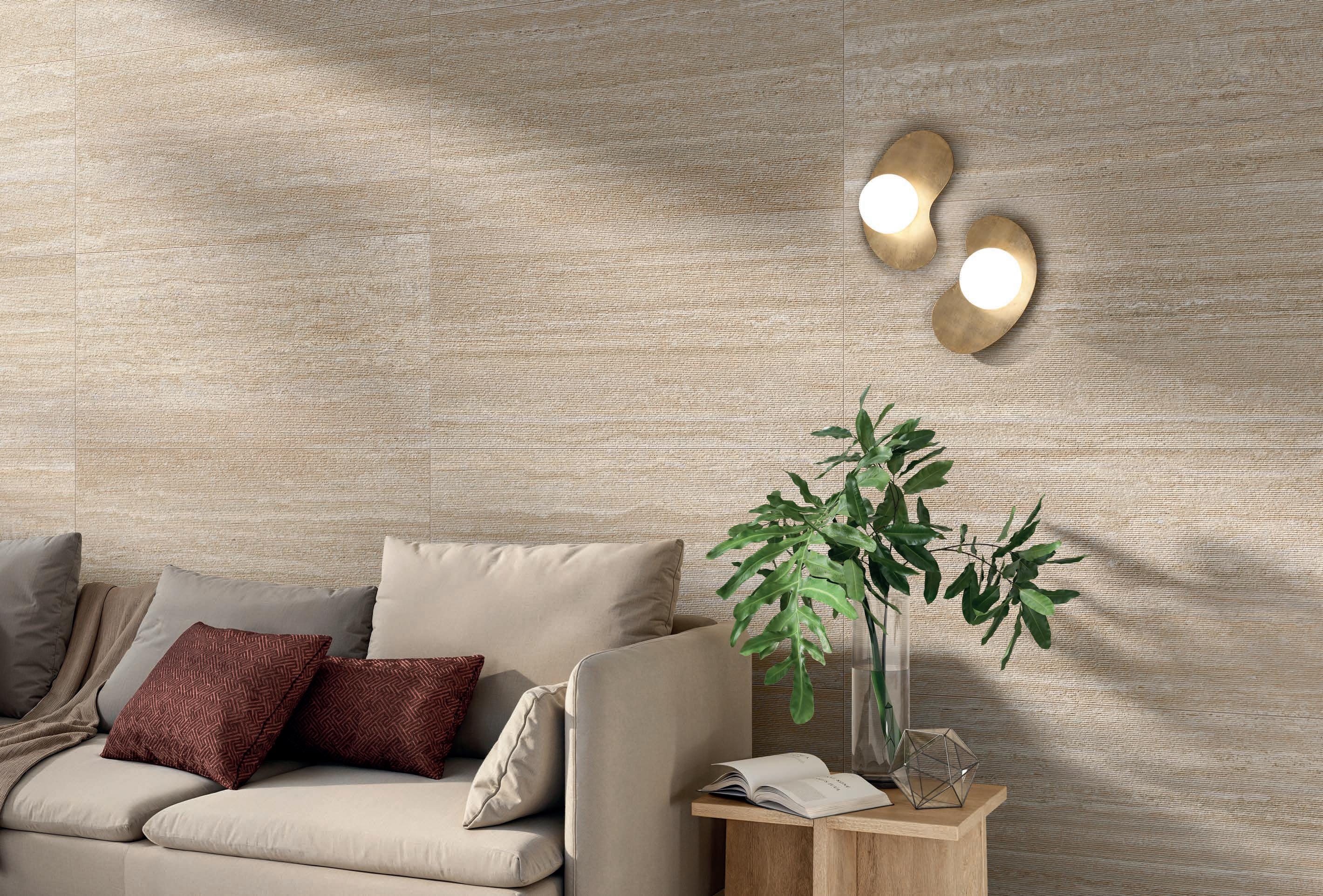 Tre soluzioni complementari e sinergiche che garantiscono ampie possibilità di impiego a parità di impatto decorativo. Dalle grandi lastre Zero.3 al gres 9 mm per interni ed esterni fino al porcellanato spessorato 20 mm di Perpetual Travertino per le applicazioni a più alte prestazioni.