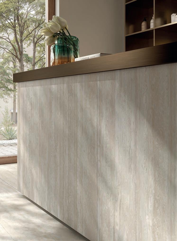 Perpetual nasce dal dialogo continuo tra memoria e visione dove la materia, attraverso diverse ispirazioni di matrice lapidea, si rinnova nel tempo e diventa espressione di stile. In questa narrazione materica, l’introduzione del travertino vein cut rappresenta la naturale evoluzione della collezione nel segno della contemporaneità.
