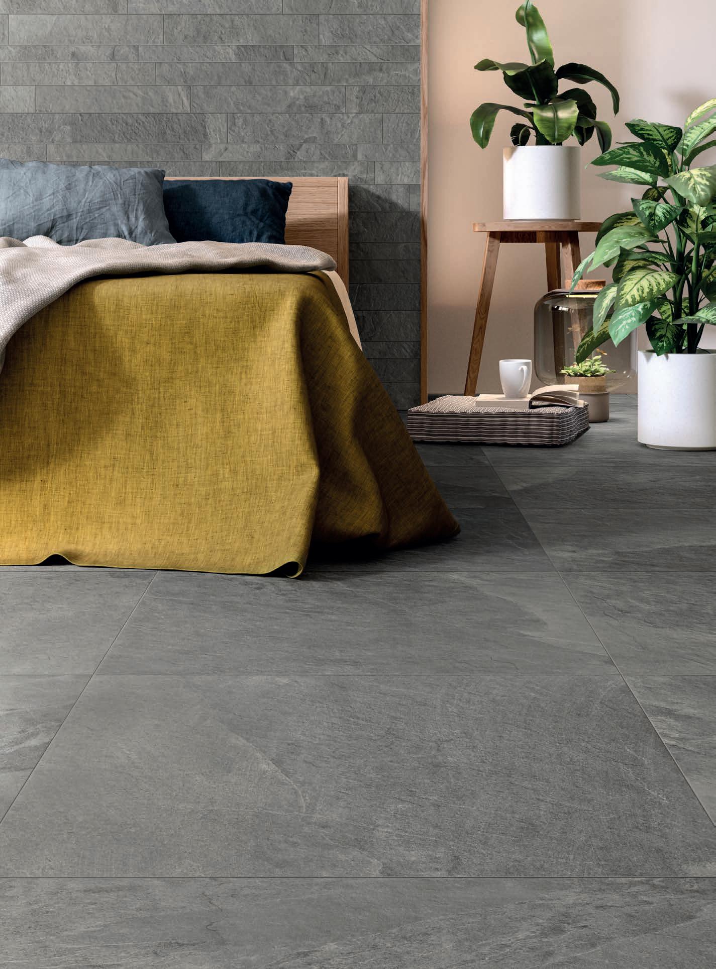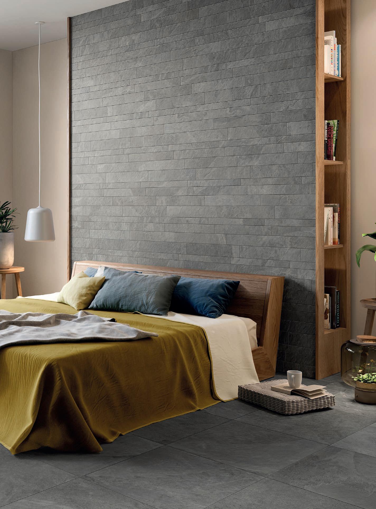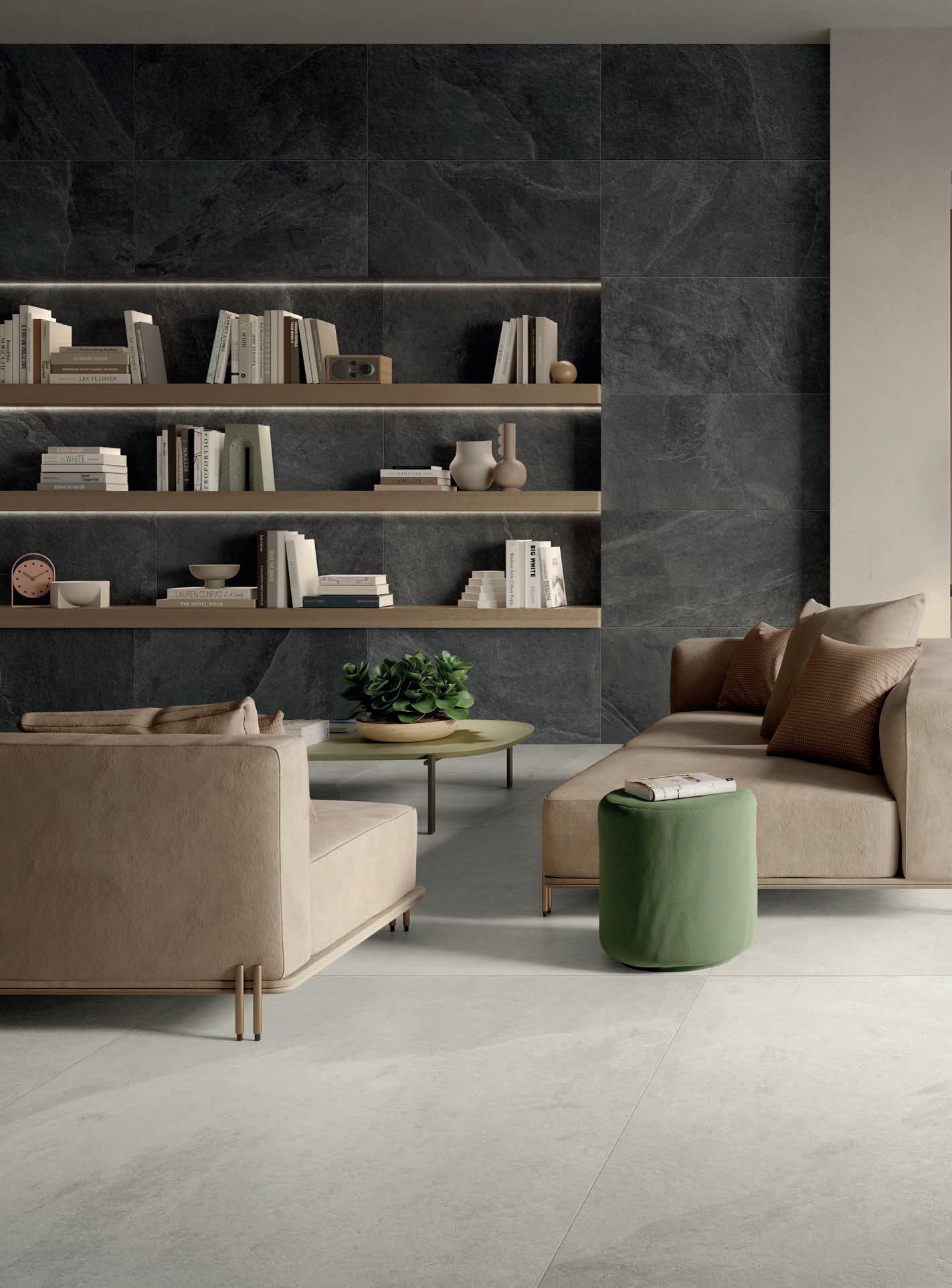 Intense and deep surfaces, reproduced in their characteristic three-dimensionality thanks to a skilful use of digital decoration, dress the spaces of contemporary living with personality.