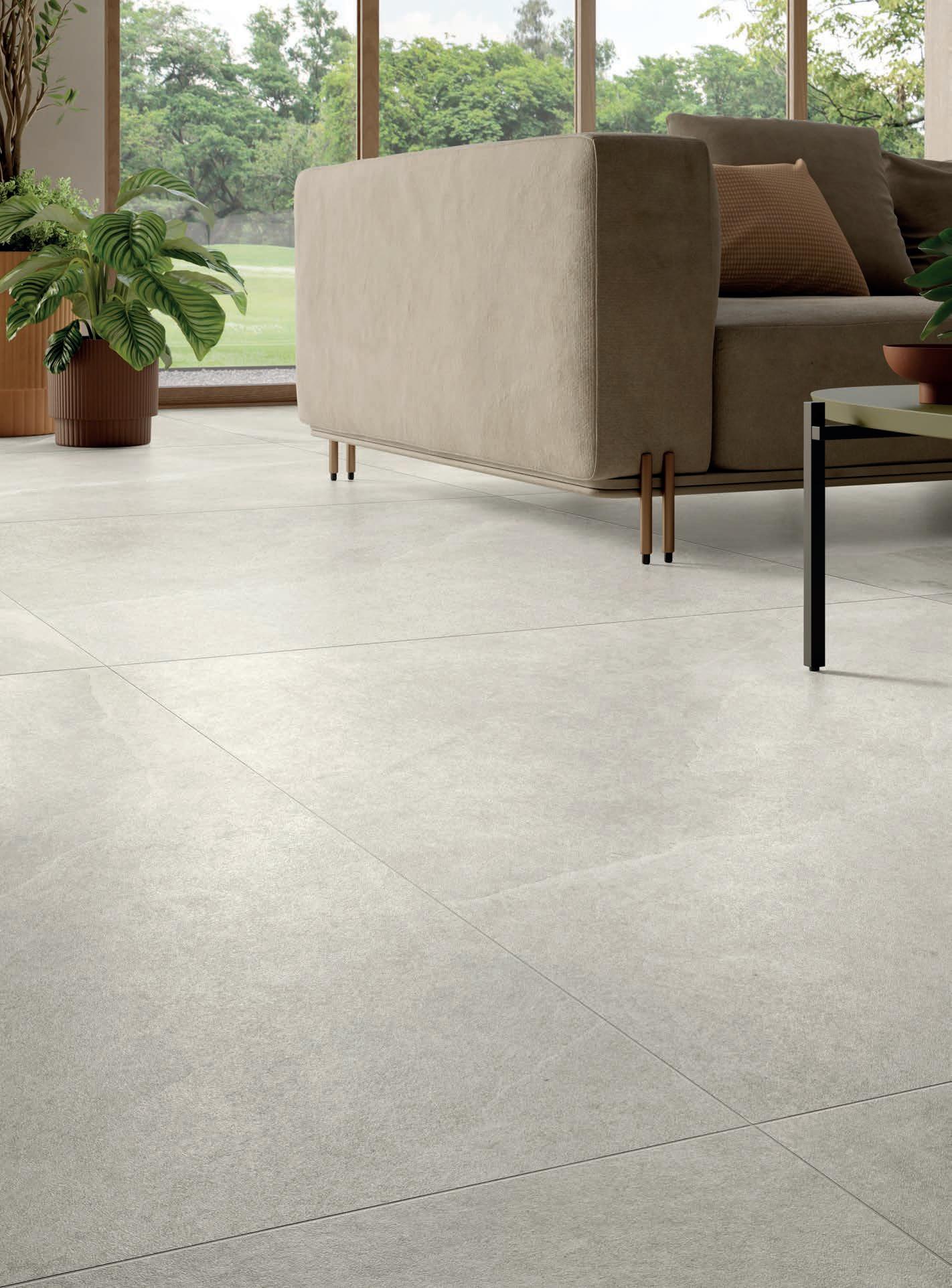 Il grande formato 120x120 cm esalta la resa estetica della materia e ne estende le possibilità di utilizzo a soluzioni progettuali di grande effetto in ogni contesto.