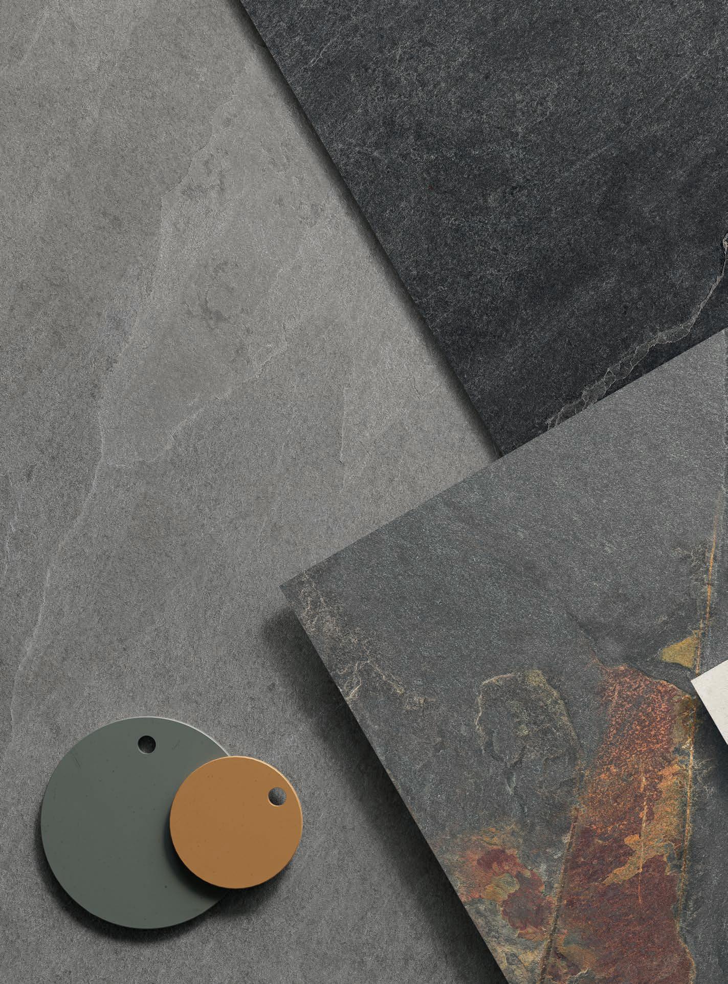 Superfici intense e profonde, riprodotte nella loro caratteristica tridimensionalità grazie ad un sapiente utilizzo della decorazione digitale, vestono con personalità gli spazi del vivere contemporaneo.