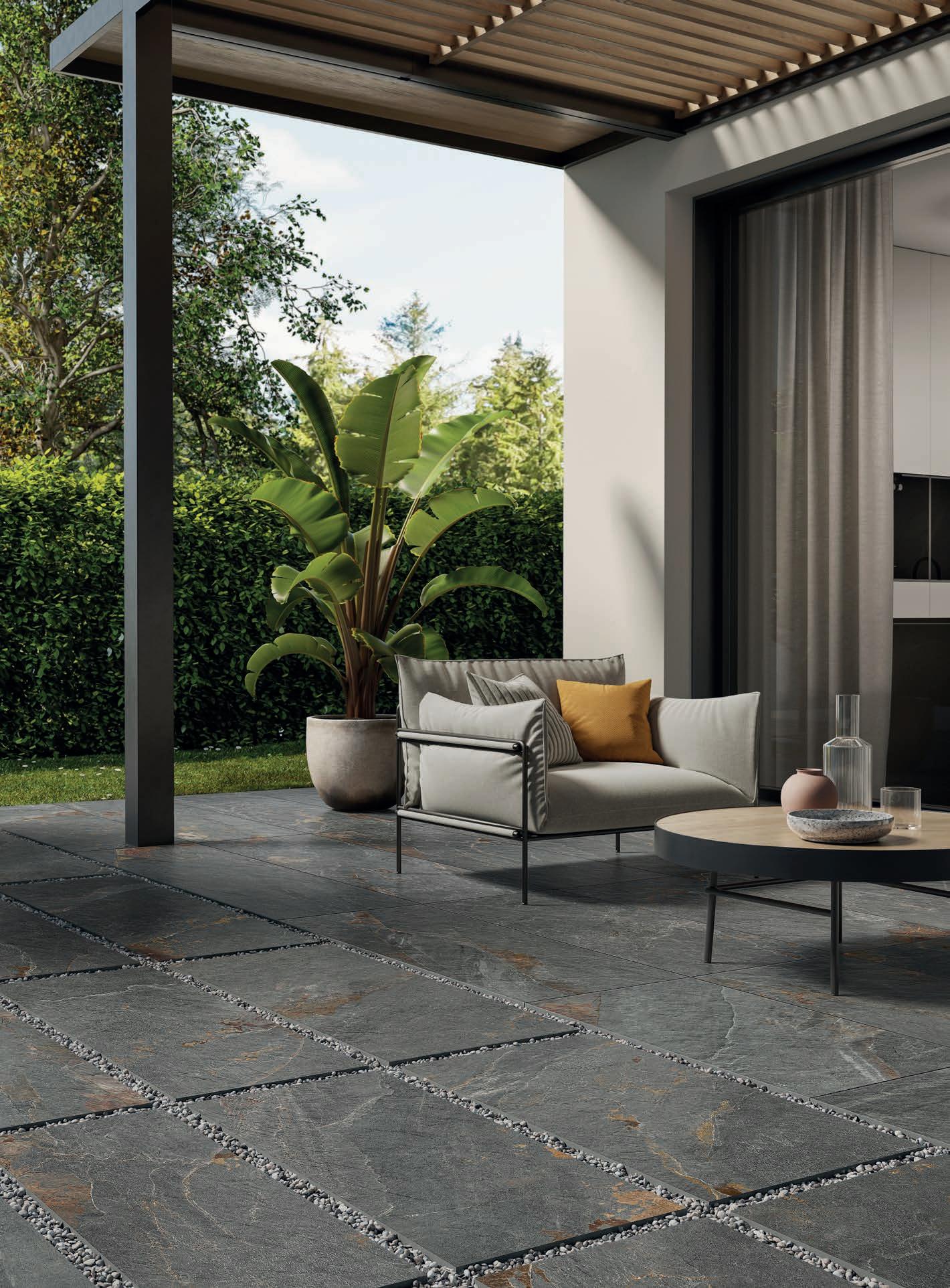 20 mm porcelain stoneware has the highest technical performance of any product and is perfect for outdoor spaces, with no risk of breakage. It enables solutions that create seamless continuity between interior and exterior spaces. Resistant to frost and to thermal shock, it also has heightened anti-slip characteristics, maintains its texture and color over time, and is easy to clean. The perfect union between aesthetic quality and high technical performance, guaranteeing limitless durability.
