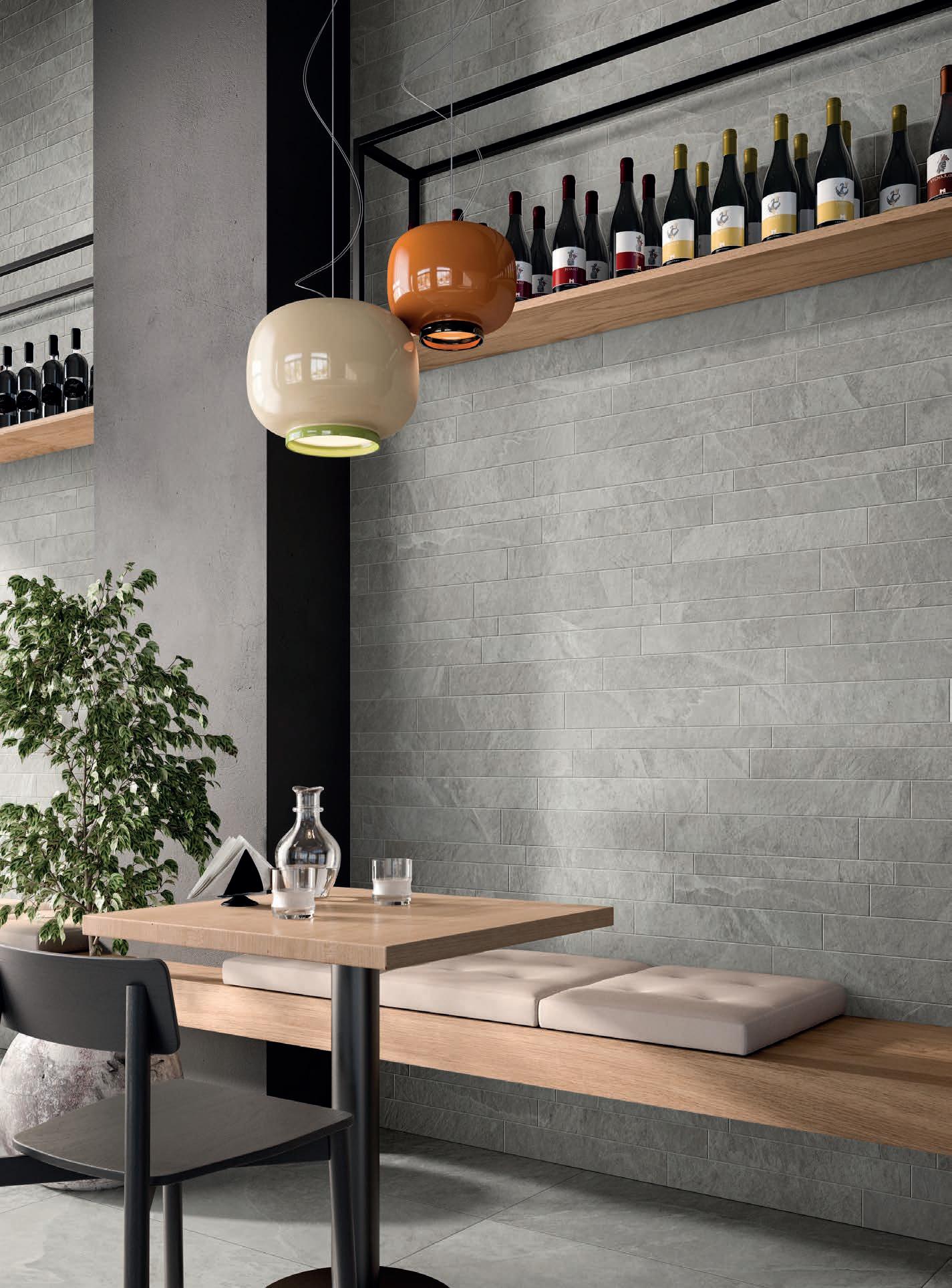 L'estensione della collezione garantisce la massima libertà progettuale. Le infinite possibilità di abbinamento tra formati, nuance, strutture, mosaici e muretti, permettono di dare vita a progetti sempre diversi ed attuali.