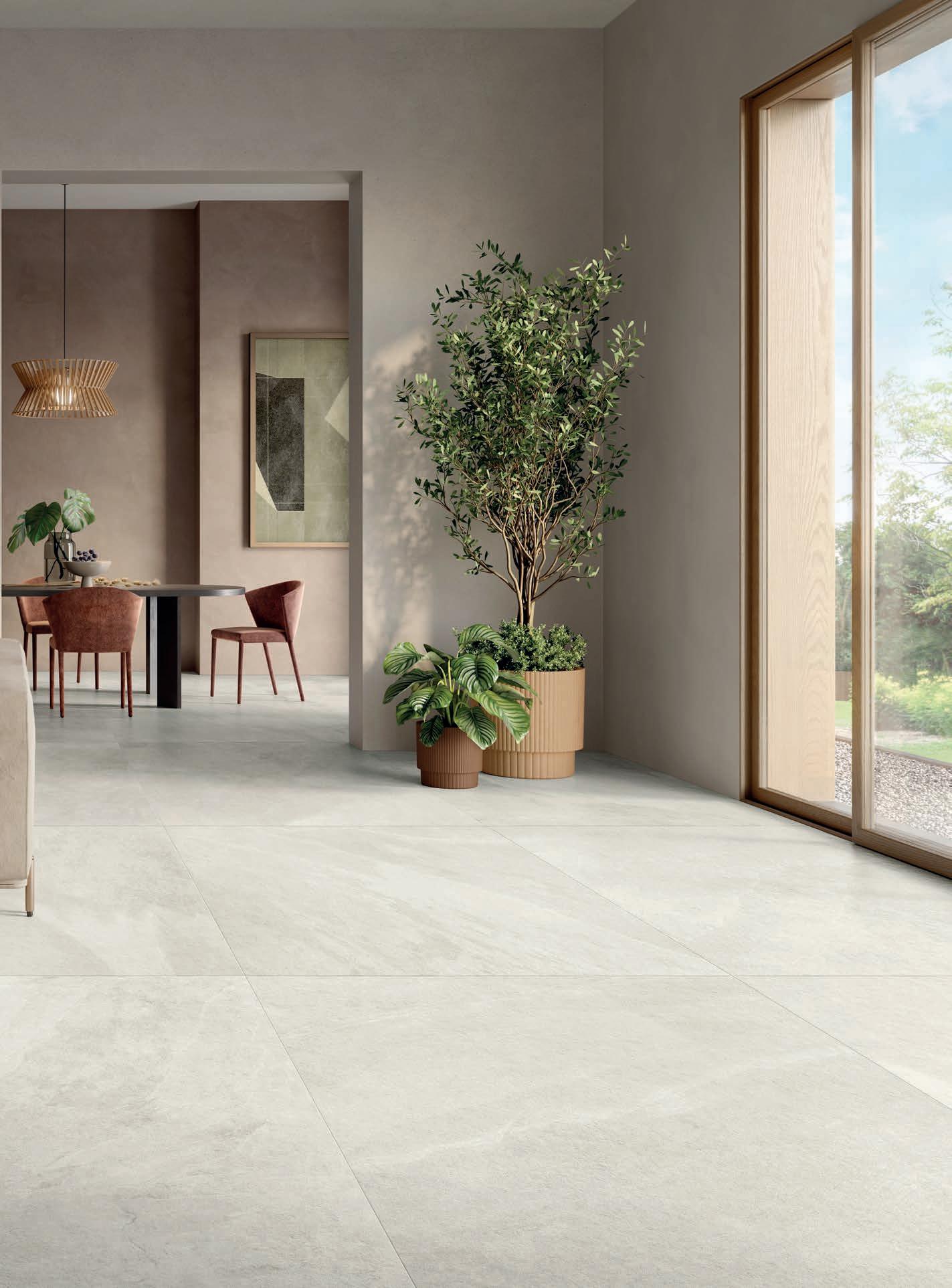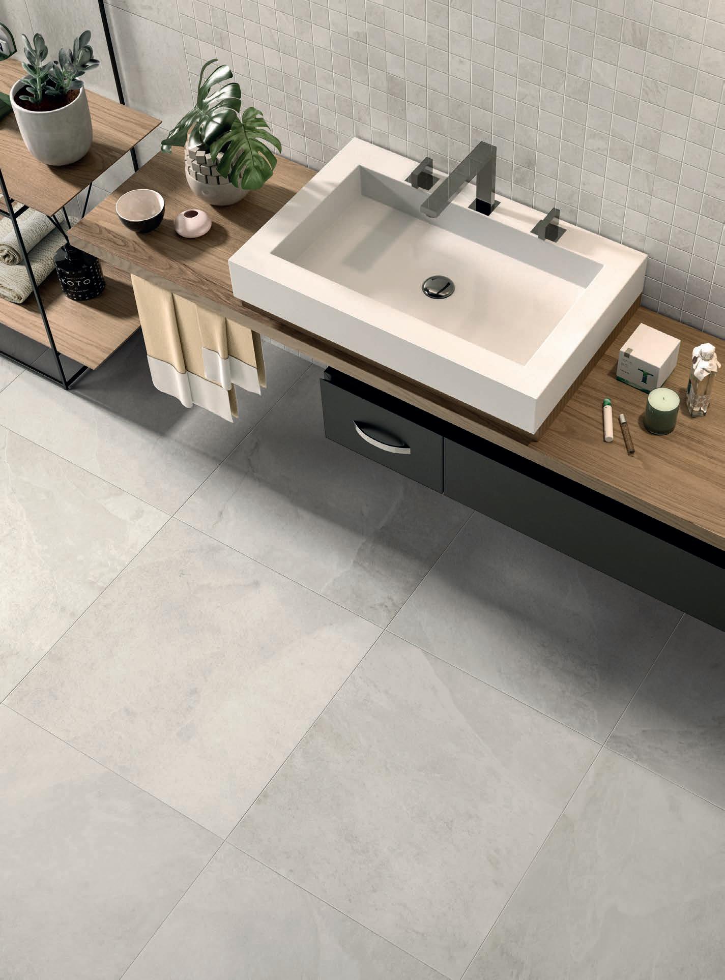 The naturalness of the Frame surfaces cross dynamic, multifunctional spaces with coordinated solutions for floor and wall tiles, inviting gestures, emotions and sensations that belong to continuously evolving lifestyles.