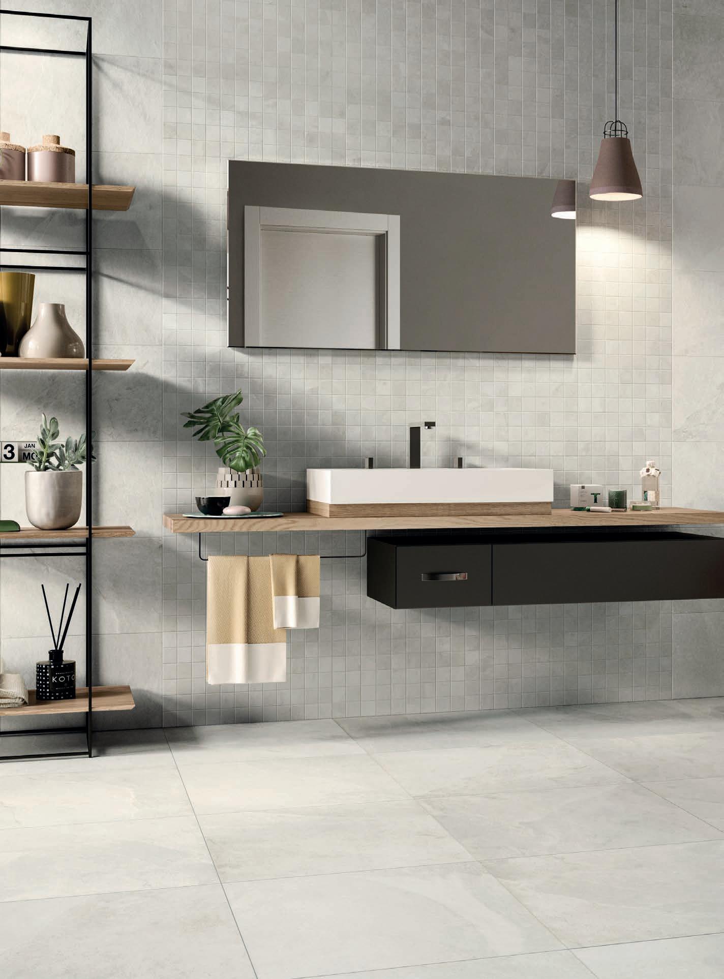The extension of the collection guarantees maximum design freedom. The infinite possibilities of combination between sizes, nuances, structures, mosaics and walls, make it possible to give life to projects that are always different and current.