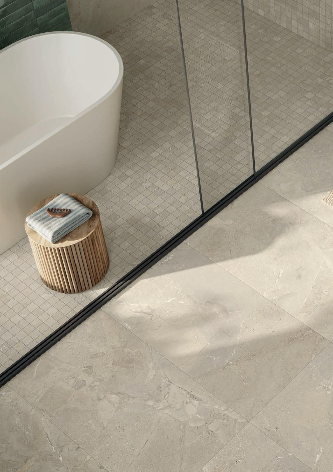 Una materia che trasmette energia e vitalità in ogni dettaglio. L’eleganza del limestone, l’intensità della breccia e la preziosità del marmo si fondono in un’alternanza di chiari e scuri che dona profondità e movimento, con vibrazioni sempre nuove.