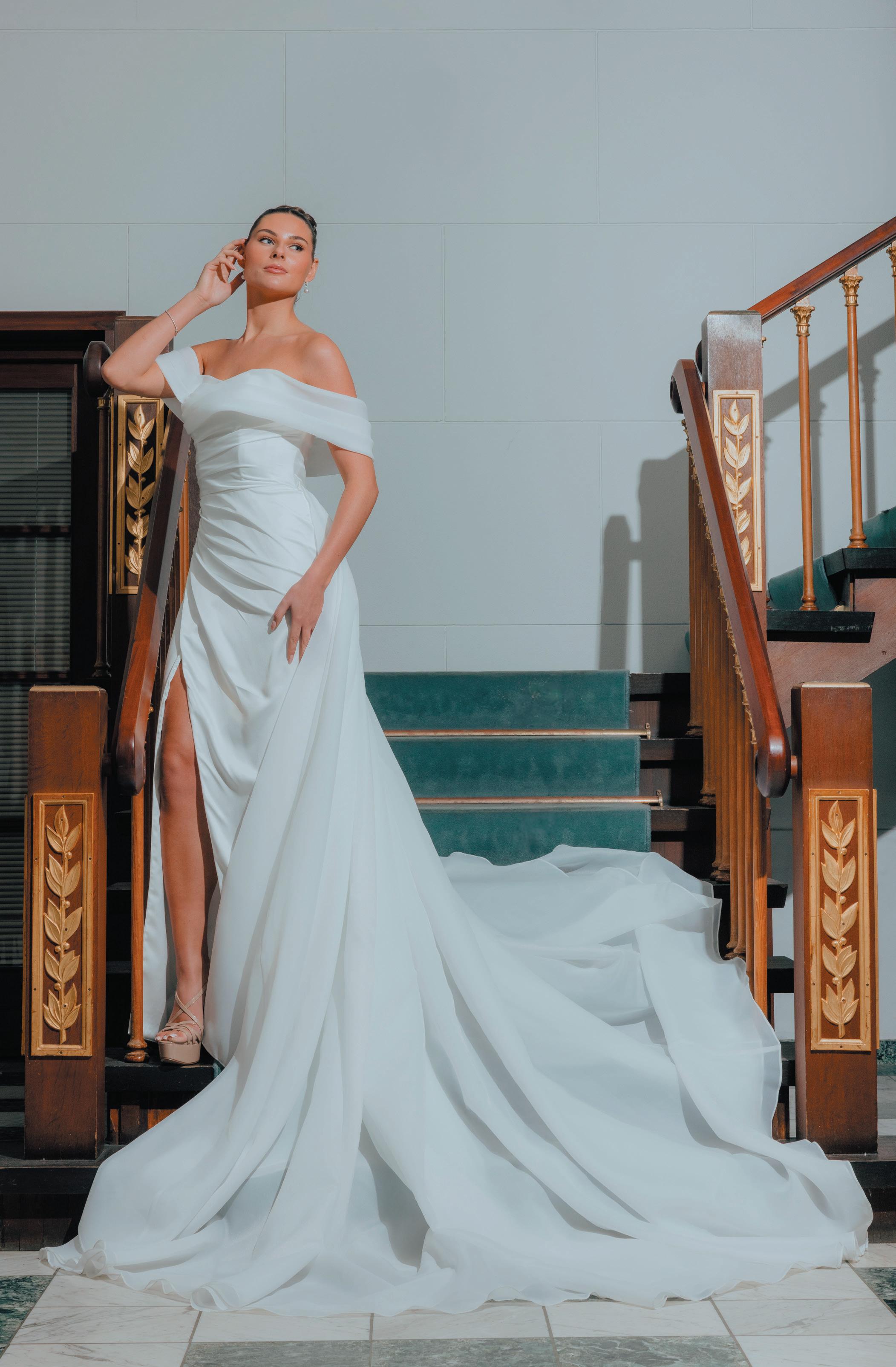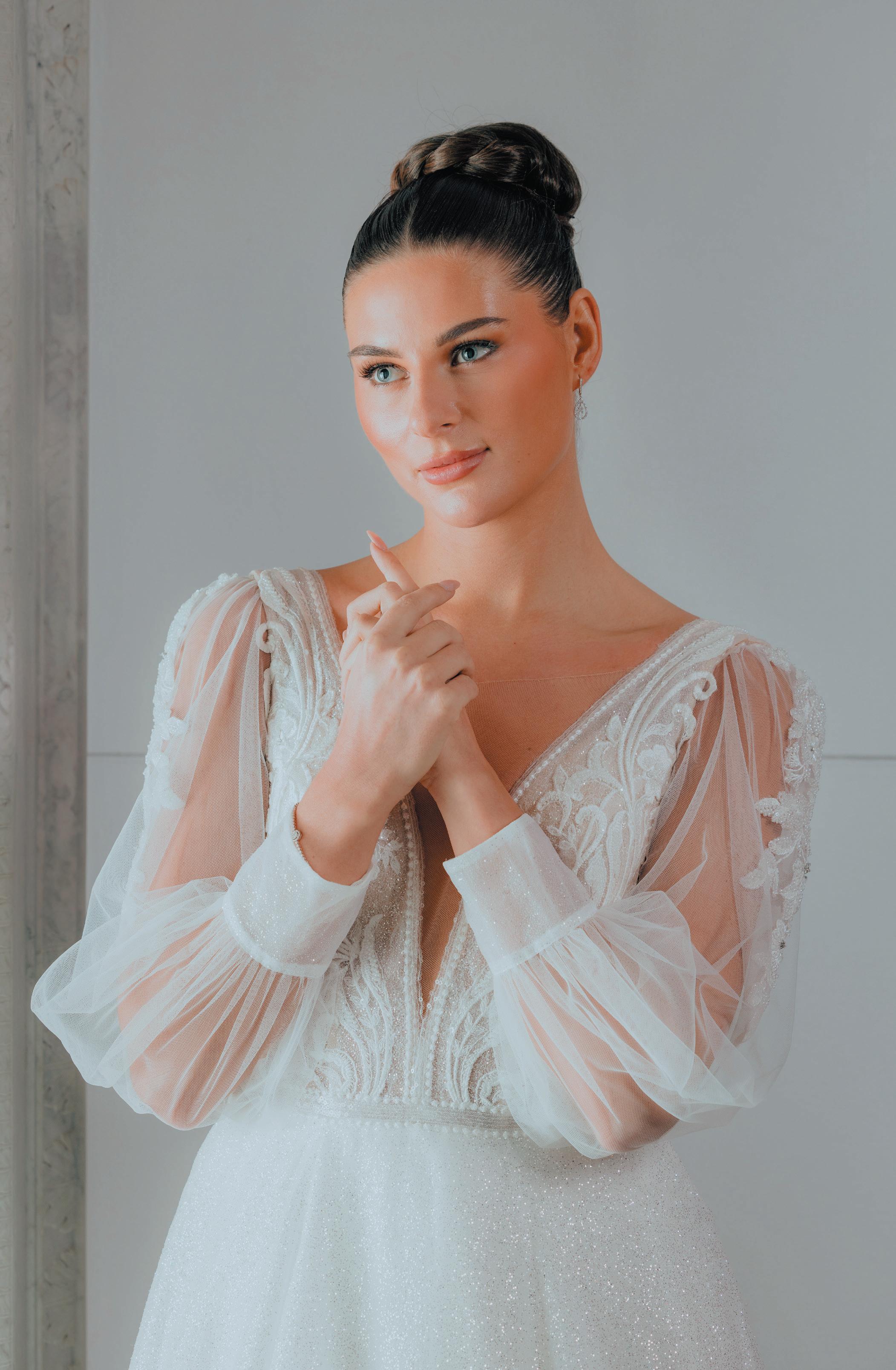 Vores mission er at skabe harmoni mellem din brudekjole og den oplevelse, du får i din søgen. Derfor starter processen med en dyb indføling, hvor du præsenteres for et bredt udvalg af kjoler, og vi hjælper dig til at finde den helt rigtige stil og det helt rette udtryk, som matcher den stemning, du ønsker at skabe på bryllupsdagen. Vi prøver os frem med forskellige silhuetter og styles, så du passer bedst til hele dig.