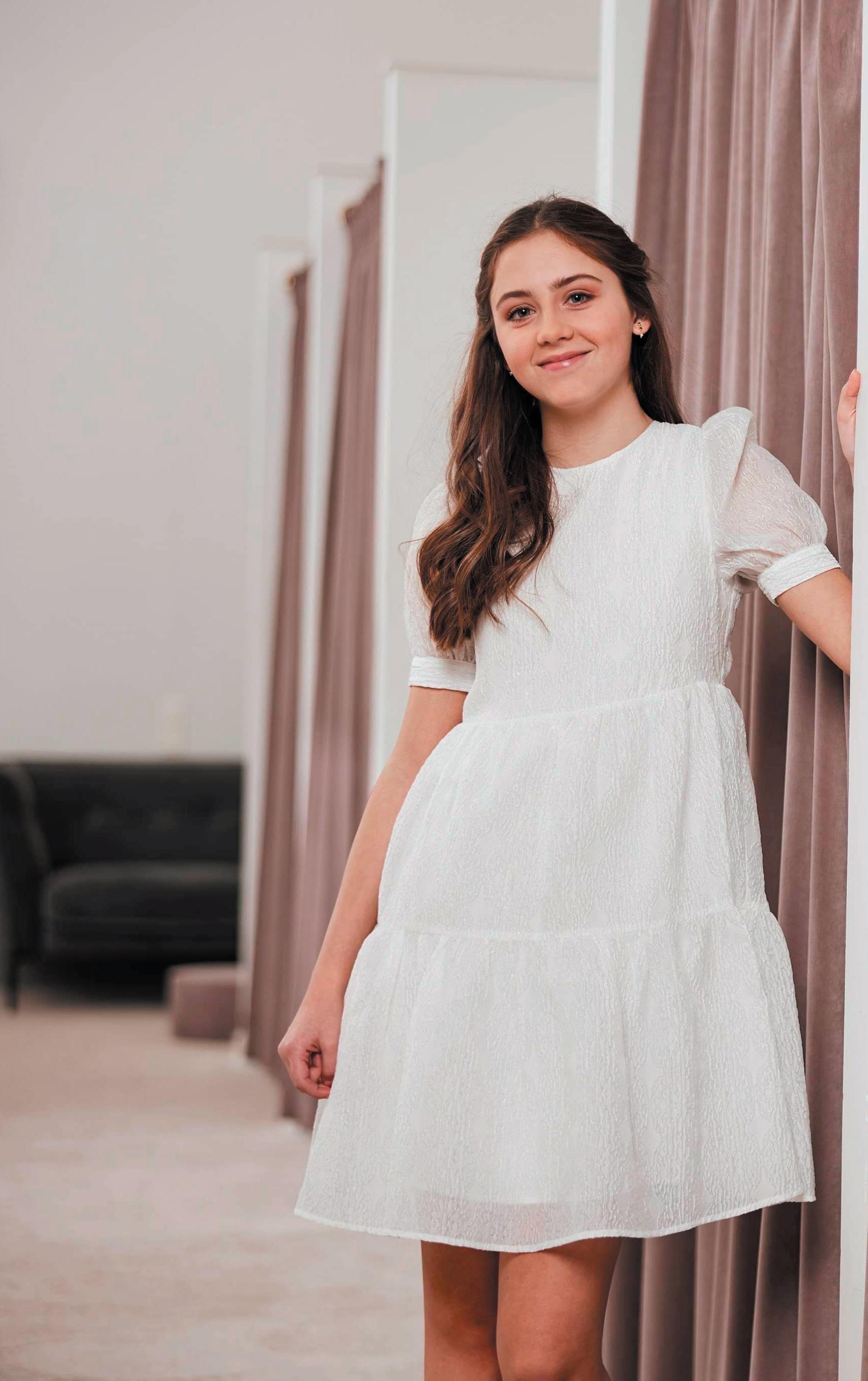 Når det kommer til konfirmationskjolen, var valget klart: det vigtigste var at føle sig både smuk og godt tilpas. “Jeg endte med at vælge Mikala-kjolen, som opfyldte alle mine ønsker. Den er ikke bare smuk – den er også virkelig behagelig at have på.”