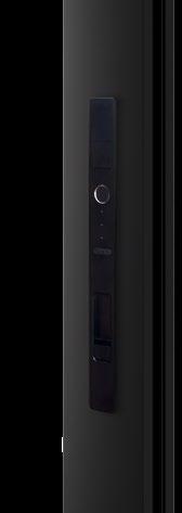 A modern handle with multiple unlocking mechanisms including RFID scanner and thumbprint scanner.