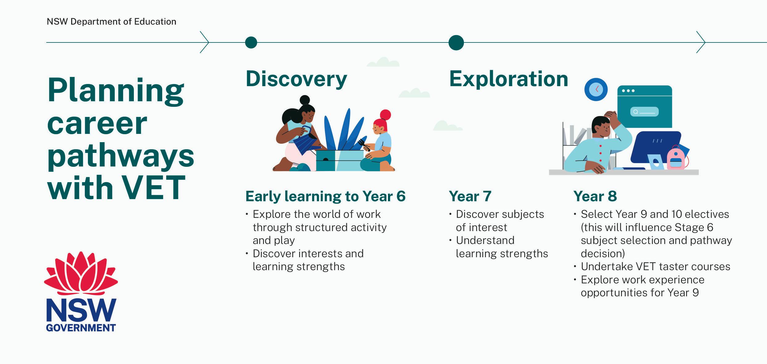 Virtual VET courses combine teacher-led virtual classrooms with workshops and work placements. Work placement (mandatory for Years 11 and 12 students who study VET subjects as part of their HSC) is a planned opportunity in a quality host workplace that enables students studying VET courses to practise and develop their industry competencies and their employability skills in a real work context.